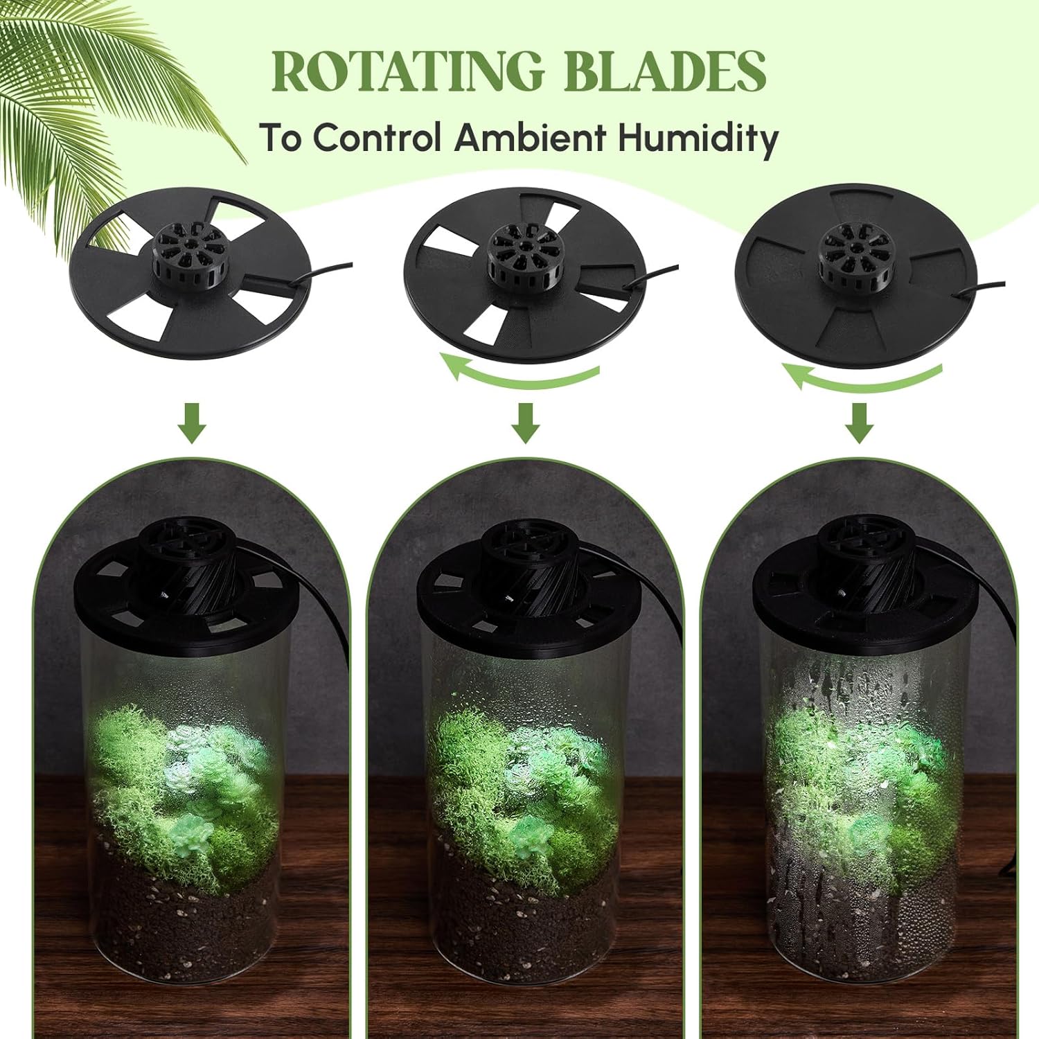 - Efficient and Adjustable Lighting: our 3W LED light is suitable for small plants and mini aquariums; You can easily change between strong and weak lighting modes, providing the right amount of light for your succulents or mosses; The adjustable lighting and rotating lamp base allow you to control the ventilation and humidity inside the bottle, which is especially useful for plants that require high humidity