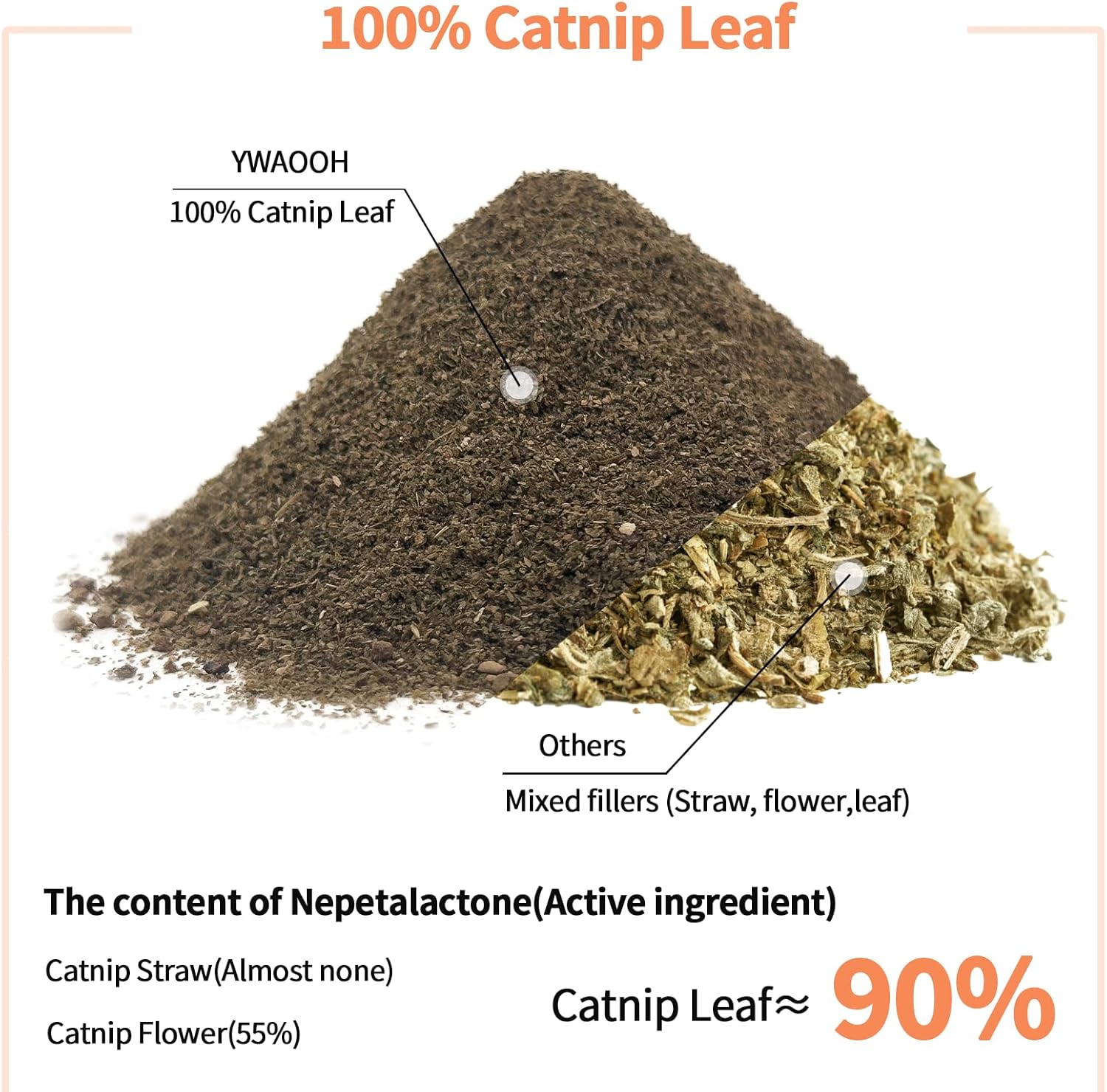 - 🌿 Low-Temp Processed for Max Potency: Unlike most catnips on the market, YWAOOH uses advanced low-temperature extraction and micro-grinding to retain more nepetalactone, the active compound cats love. This results in stronger, longer-lasting stimulation with less product.