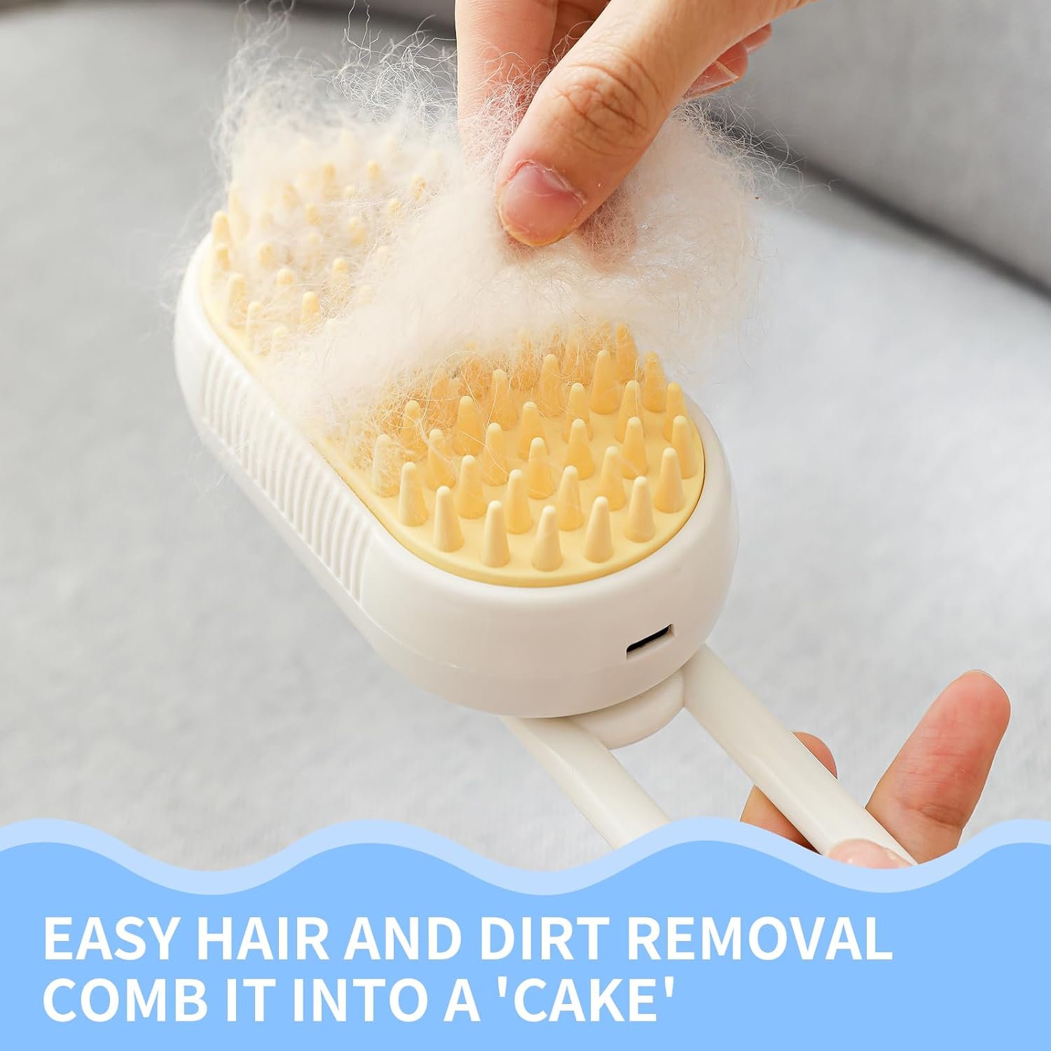 Cat Steam Brush for Shedding,4 in 1 Grooming Brush for Cats and Dogs,Deshedding,Massage,Cleaning & Anti-Static All In One,Suitable for Long & Short Haired Pets,Includes Waterless Shampoo,Yelow