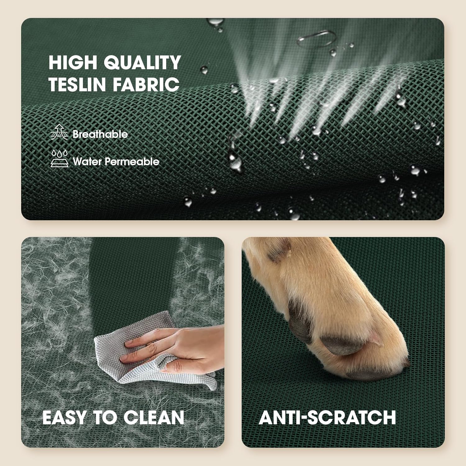 - 【Easy Care】This raised dog bed's mesh fabric is simple to clean, if the outdoor dog bed is soiled or dog hair etc., you just need to rinse the mesh with water and wipe the surface of the raised dog bed. ensuring your pet's sleeping area stays hygienic.