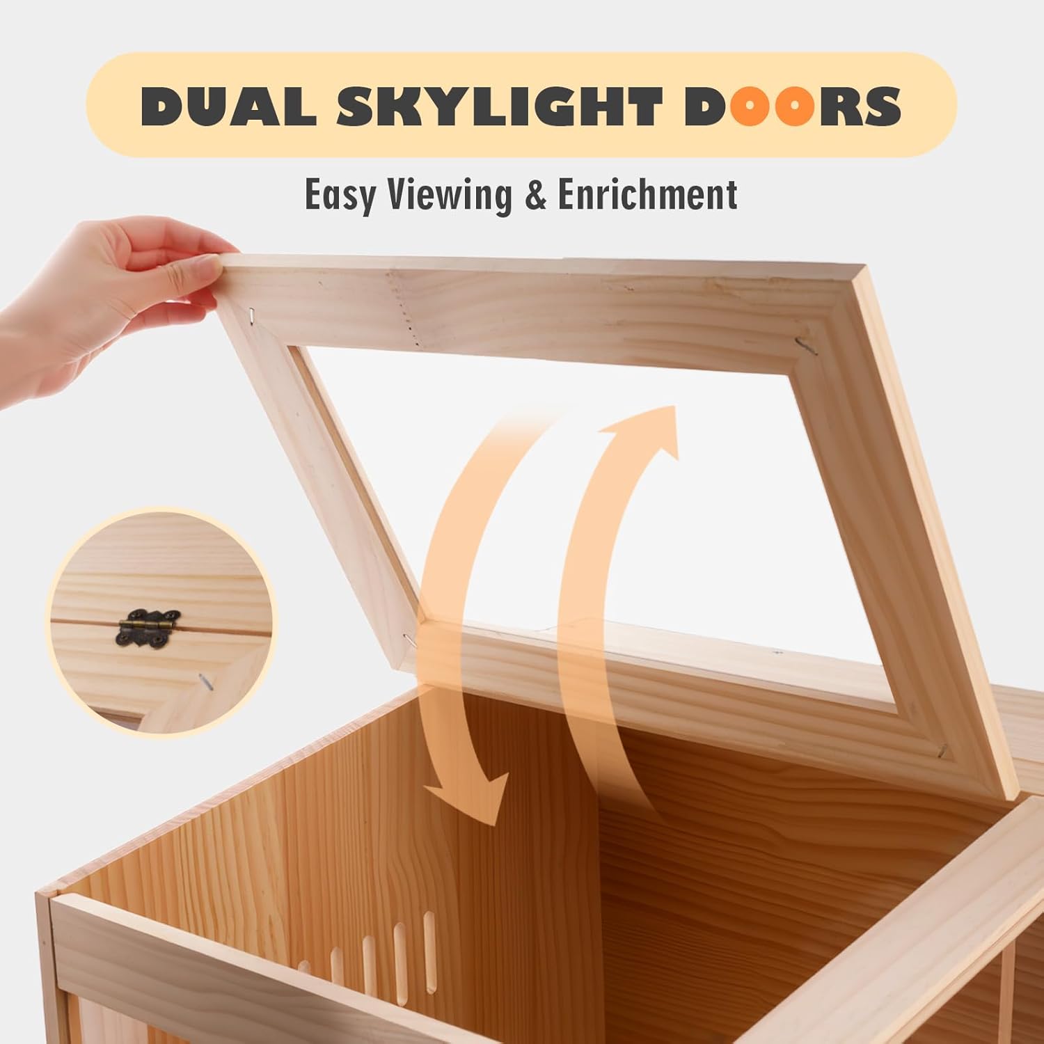 - Full Visibility & Interaction: Designed with a large acrylic front panel and double skylight doors, offering excellent visibility and easy access—perfect for bonding moments and pet observation