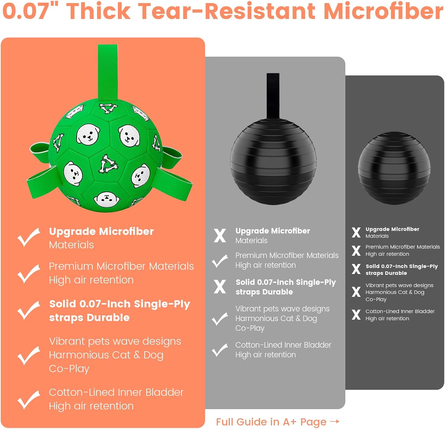 Dog Toys Ball, Durable Dog Soccer Ball with Straps, Interactive Dog Toys for Tug of War, Water Pool Puppy Toys for Indoor/Outdoor – Fun Dog Birthday Gift for Small & Medium Dogs, 6 Inch