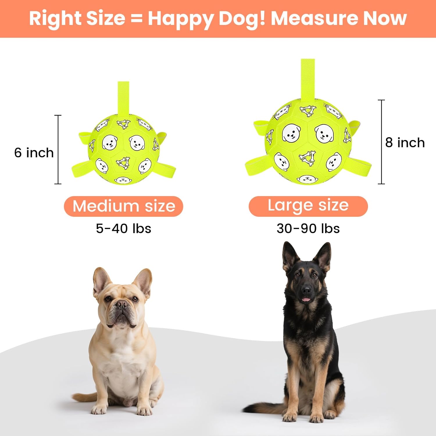 Dog Toys, Durable Dog Soccer Ball with Straps, Interactive Dog Toys, Water Fetch Ball for Tug of War, Puppy Toys for Indoor/Outdoor โ Fun Dog Birthday Gift for Small & Medium Dogs, 6 Inch