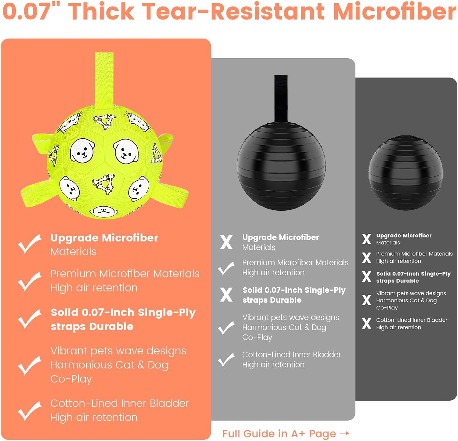 - ๐งฑDurable, Safe & Ready for Rough Play: Made with thick 0.07" premium Microfiber and reinforced stitching, this ball is built to handle daily fetch, tug, and chase games. CPC-certified and safe for pets. Itโs not a chew toyโbut itโs tough enough to take a beating. ๐๐๐ฑ ๐๐ข๐ซ = ๐๐๐ฑ ๐๐ฎ๐ซ๐๐๐ข๐ฅ๐ข๐ญ๐ฒ. ๐๐๐๐ฉ ๐๐ฎ๐ฅ๐ฅ๐ฒ ๐ข๐ง๐๐ฅ๐๐ญ๐๐!