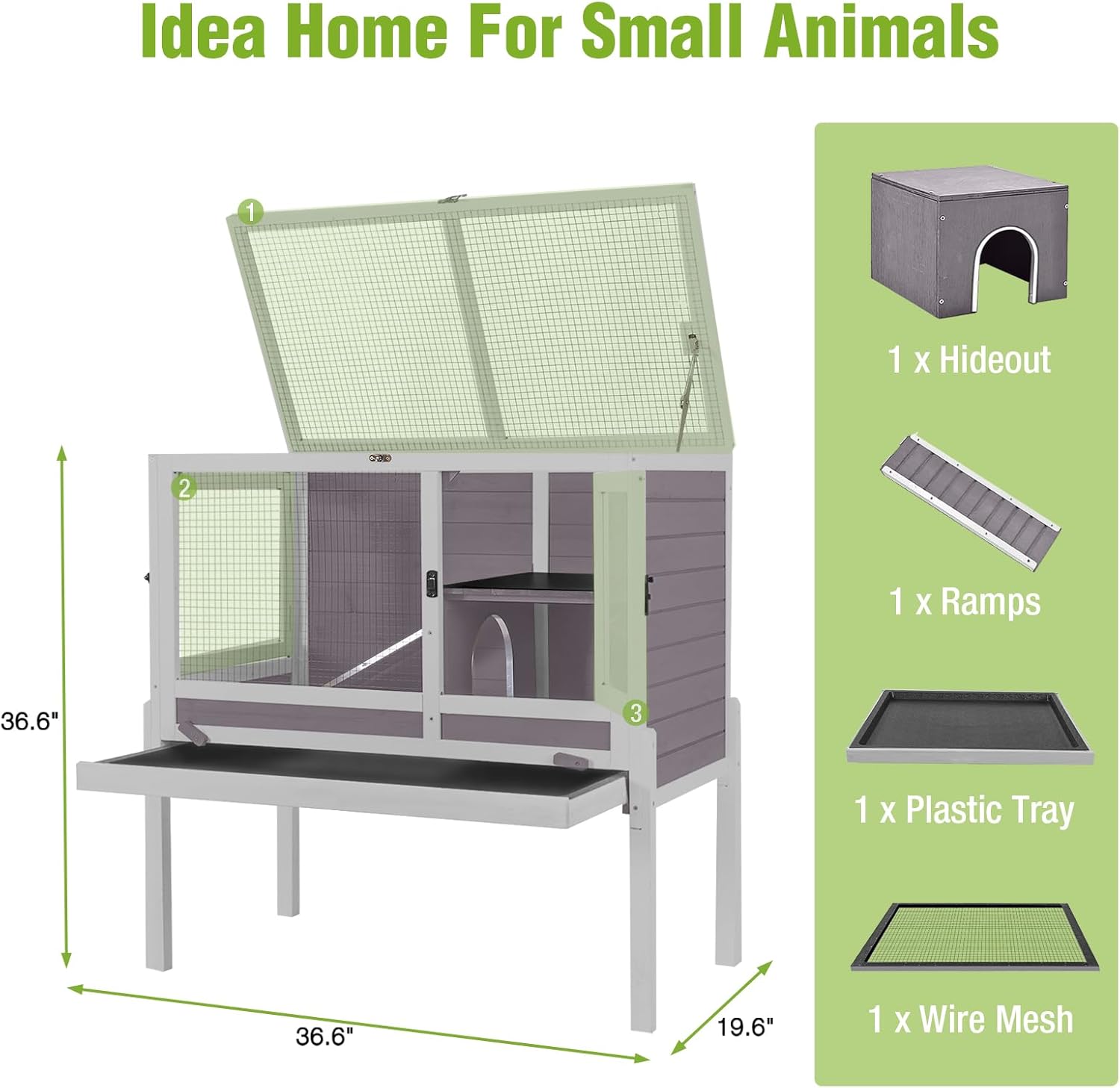 GUTINNEEN Rabbit Hutch Guinea Pig Cages Indoor with Stand Wooden Small Animals Cage Hutch Hamster Cage with Hideout,Pull Out Tray, Anti Chew Ramp (Grey)