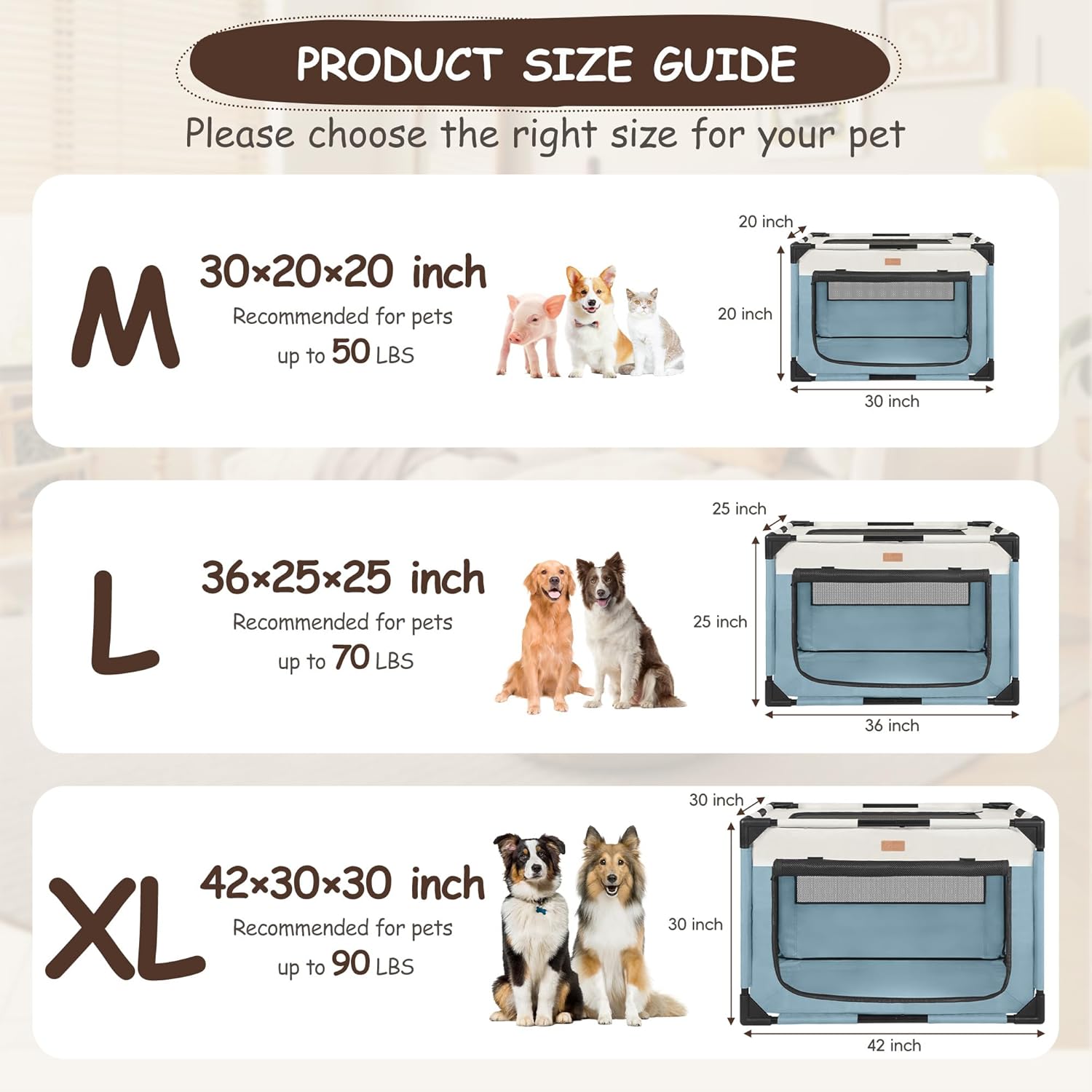Dog Crate - Soft Pet Kennel for Dogs/Cats, 3-Door Breathable Travel Cage with Mesh Window, Portable Dog Kennel for Indoor & Outdoor, Blue-XL