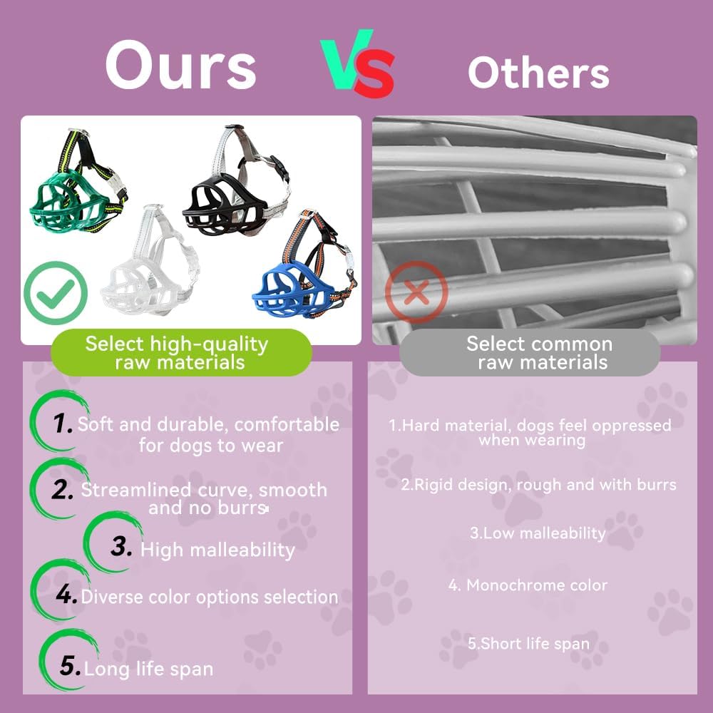 - LIGHTWEIGHT & DURABLE:Made from odorless TPE silicone, this muzzle is lightweight enough for small dogs yet strong and sturdy enough for medium and large dogs, ensuring durability and safety during daily use.