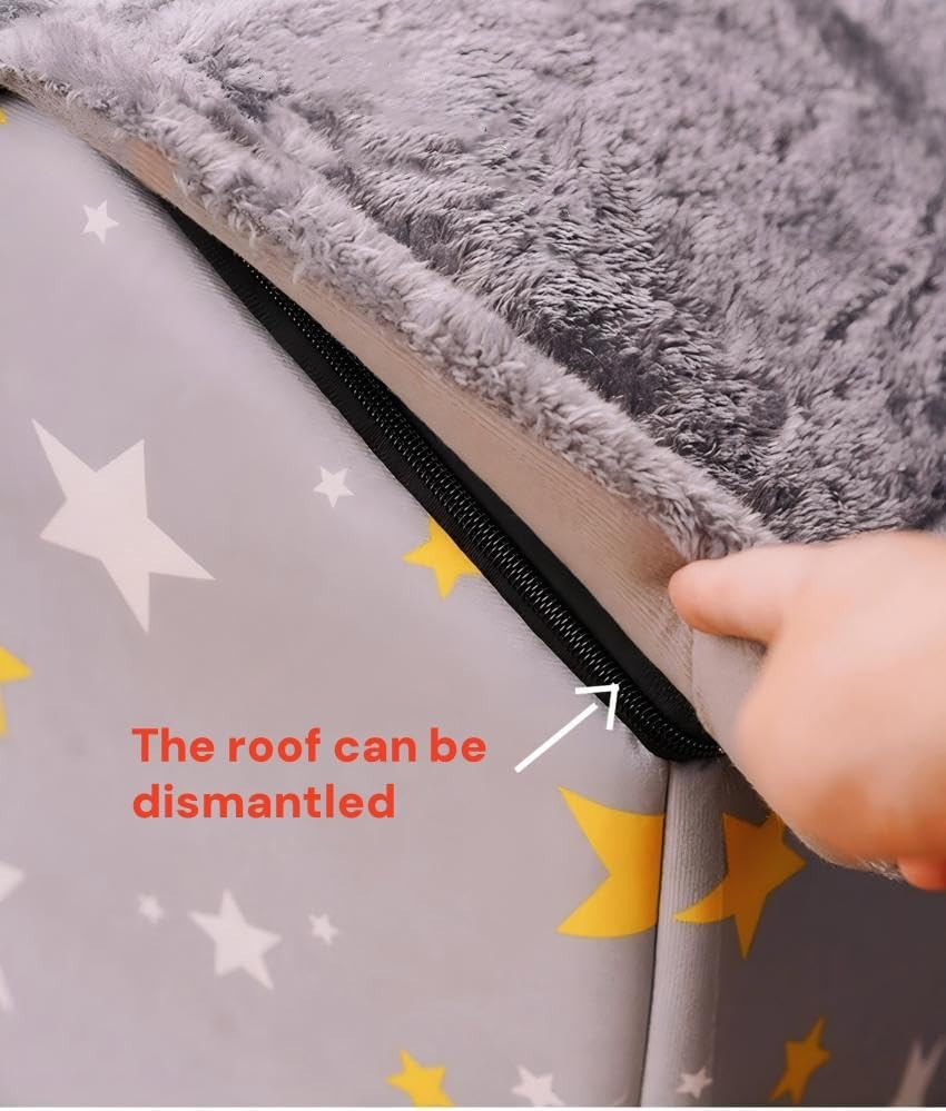 Scnbom Dog House Indoor Puppy Cave Cat Nest Kennel Pet Bed Portable Memory Sponge Foldable Houses with Cushion (Grey, M:Size fits 7.5kg/17lbs (Pets))