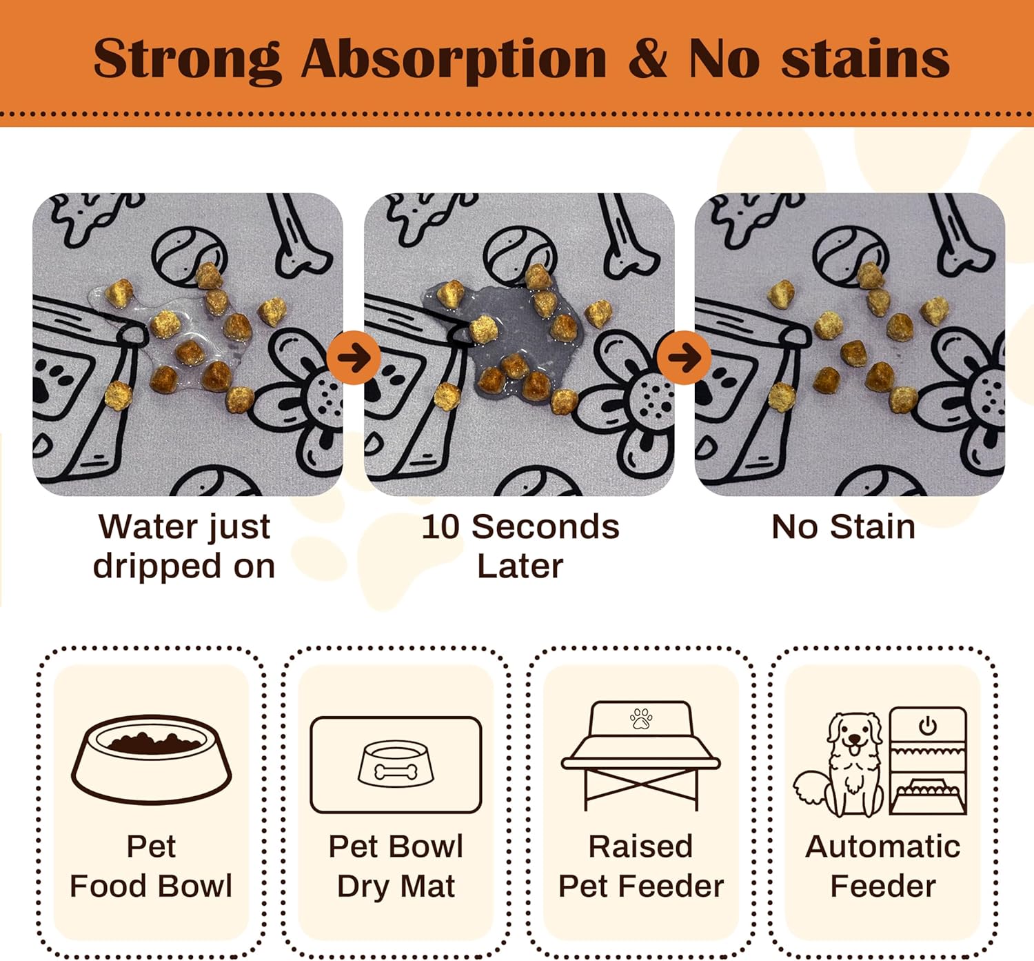 - Multi-Purpose Water Absorbent Mat - More than just a dog bowl mat, this mat is ideal for: food/water bowls, outdoor feeding, travel, or protecting floors from muddy paws. The pet mat works for all pet owners! Get your dog food mats for floors waterproofed today!
