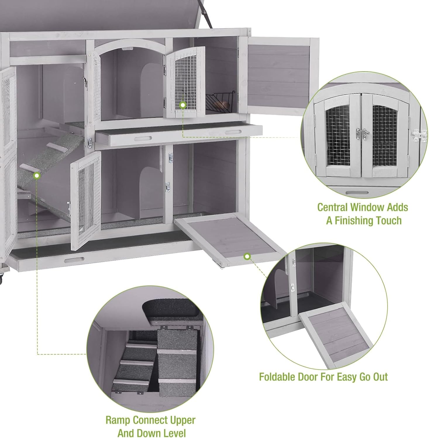 - Multiple Doors And Openable Roof: Multiple front doors and a roof that opens provide easy access for feeding, cleaning, and bonding time with your pets