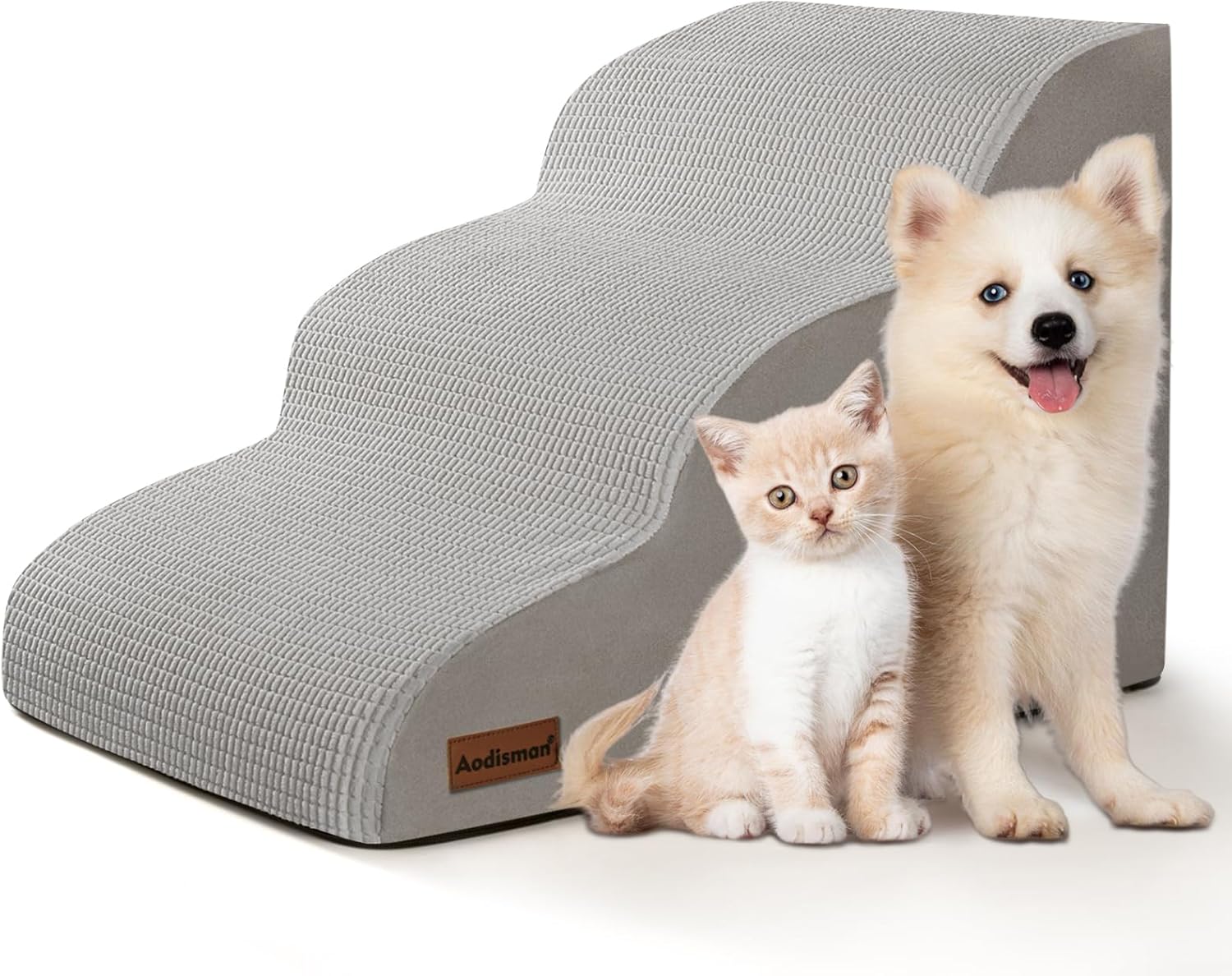 3-Step Dog Ramp and Stairs for Sofa and Chair - Non-Slip Sturdy Pet Steps for Small Dogs and Cats,15.7" H,Light Grey