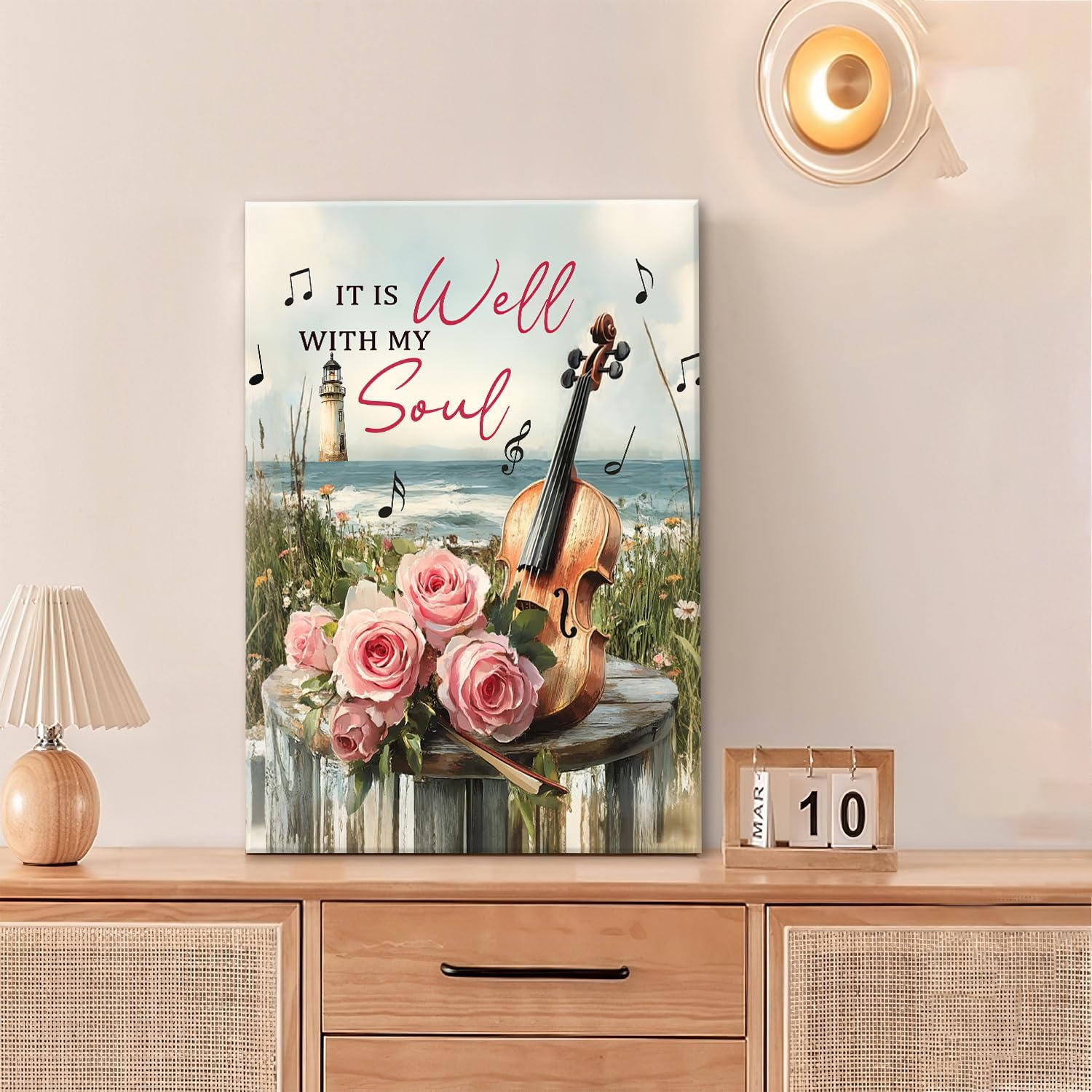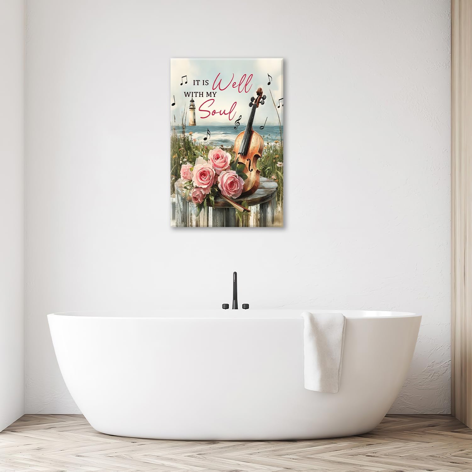 Violin Pictures Wall Art, Music Rustic Country Inspirational Bathroom Wall Decor, Coastal lighthouse Framed Painting Rose Aesthetics Canvas Artwork for Bedroom Living Room Decorations 24"L x 16"W