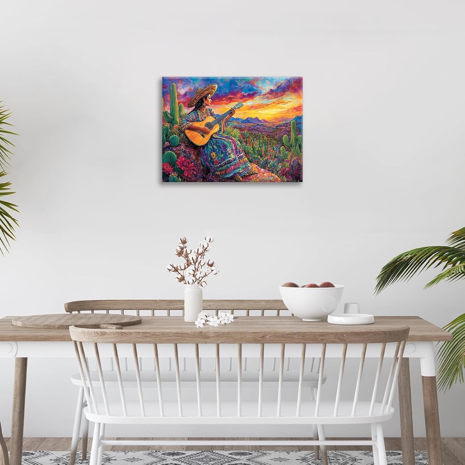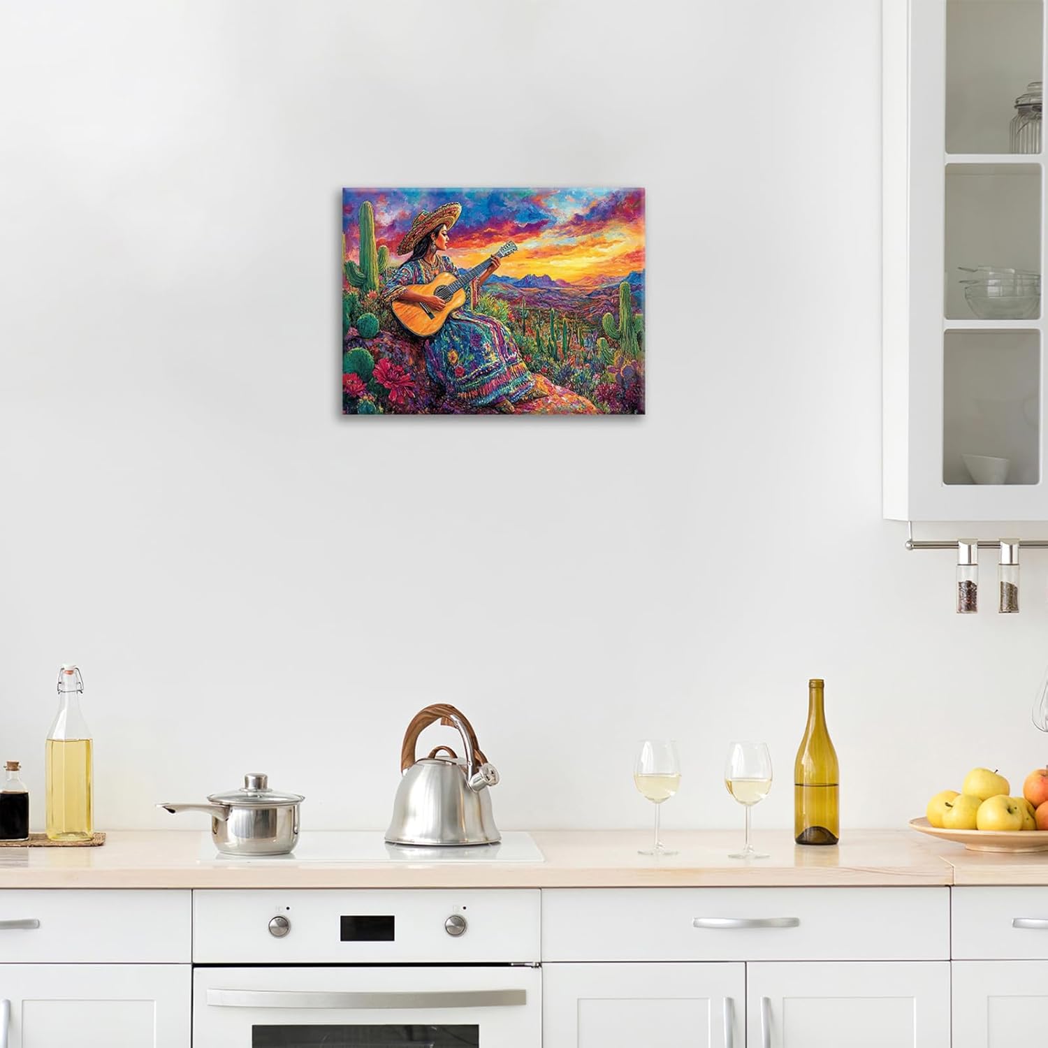 Mexican Women Pictures Wall Art, Cactus Landscape Bathroom Wall Decor, Nature Scenery Aesthetics Framed Painting Desert Modern Canvas Artwork for Bathroom Bedroom Living Room Decorations 24"L x 16"W
