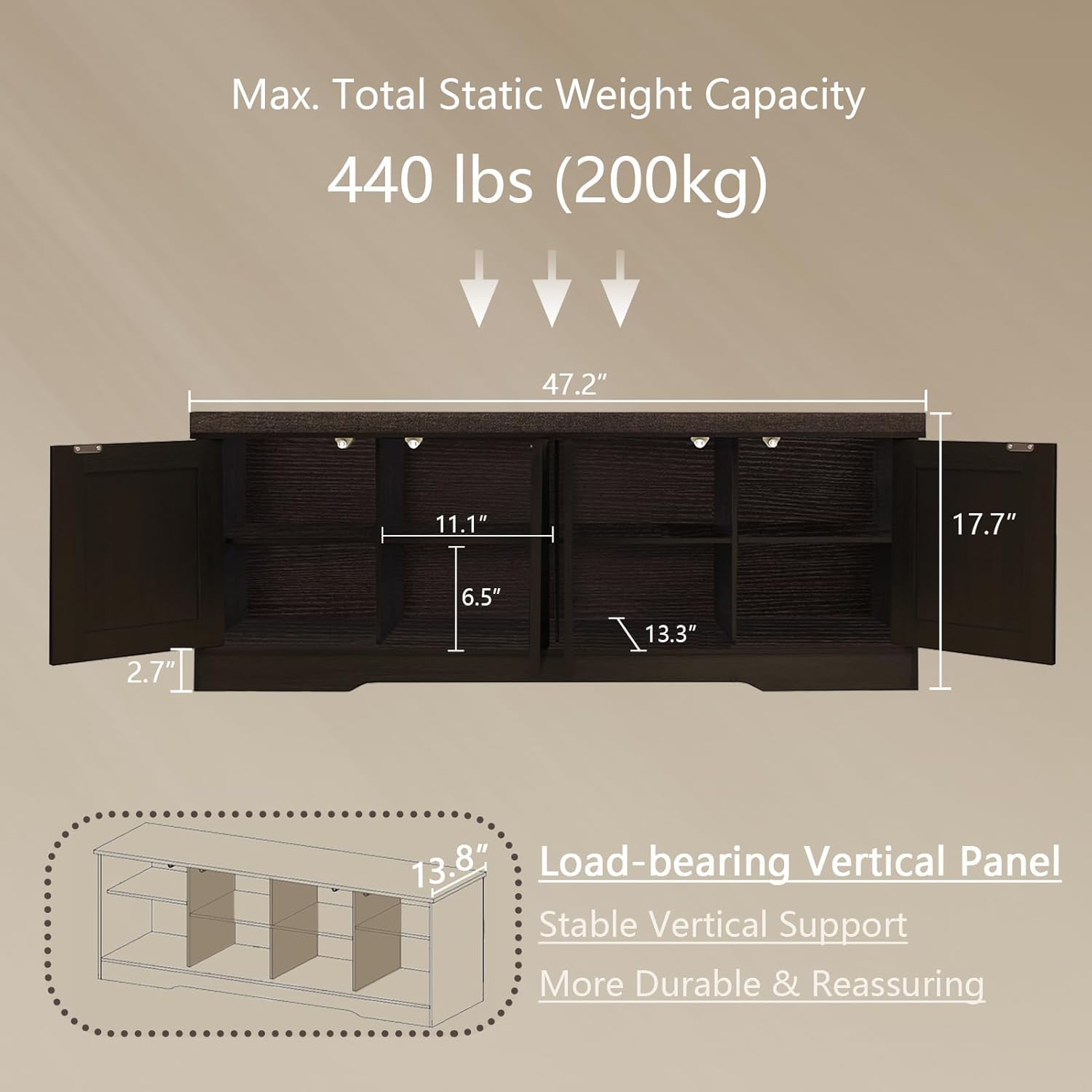 - Product Dimensions : 13.8"D x 47.2"W x 17.7"H