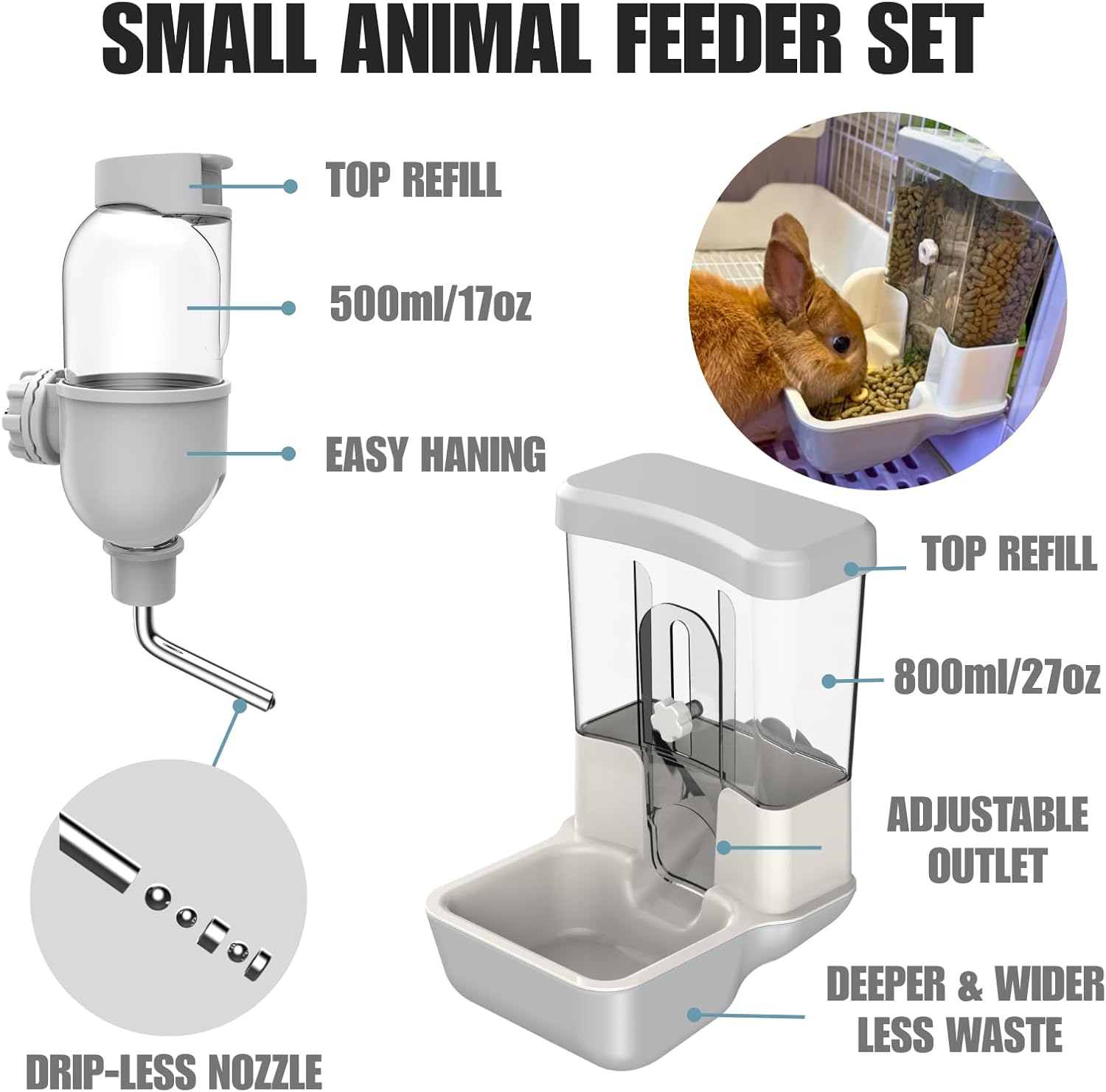 - Versatile Compatibility: The adjustable outlet suits most rabbit, guinea pig, cat, and small animal feeds. With a 360° rotatable nozzle for both in-cage and out-cage use, its 10mm small-diameter opening is ideal for rabbits and chinchillas.