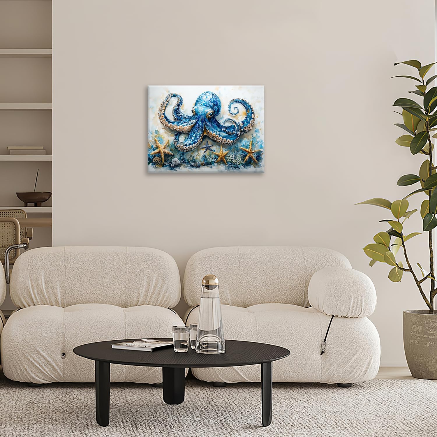 Octopus Bathroom Pictures Wall Art, Sea Animal Ocean Bathroom Wall Decor, Nautical Framed Painting Canvas Artwork for Bedroom Living Room Decorations 20"L x 16"W