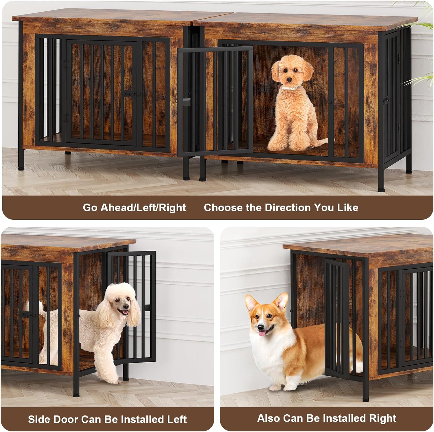 - 【Versatile Dog Crate Table】: Brief and retro dog furniture crate is suitable for various decoration styles. It is not only a dog crate for dogs, but also a TV cabinet/side table to place decorations and storage. The huge size ensures dogs have a comfortable and spacious living area, while also maximizing the use of the house's space.
