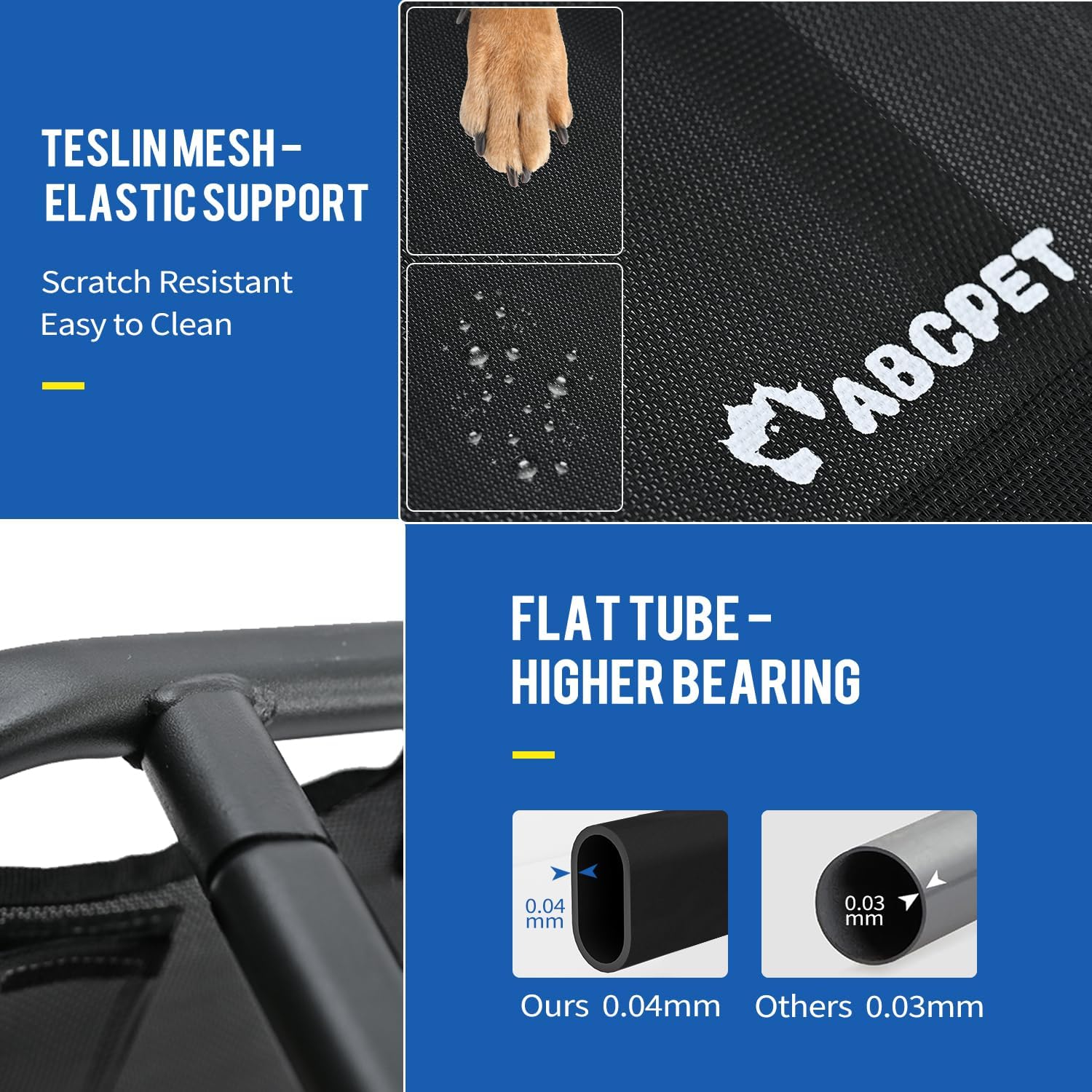 Cooling Elevated Dog Bed, Raised Outdoor Dog Bed Waterproof Pet Beds Cots Stable and Easy Assembly, Teslin Fabric with 1.2mm Thick Iron Frame, Breathable, Ultra-Sturdy,Black, 48 * 32 * 8.7