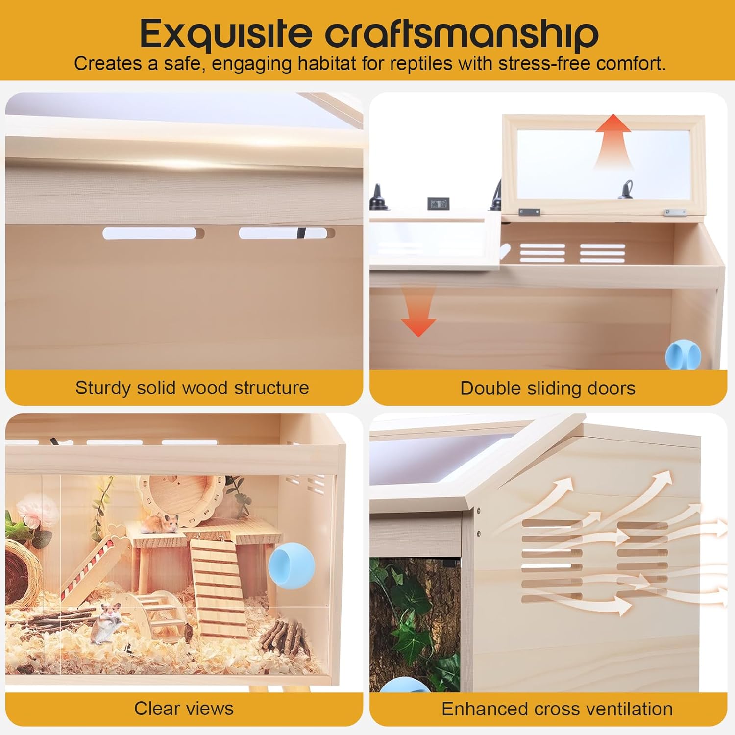 - Engineered for Reptile Health โ Features adjustable side ventilation vents to balance airflow and humidity, paired with odor-resistant, eco-friendly wood for a safe habitat.