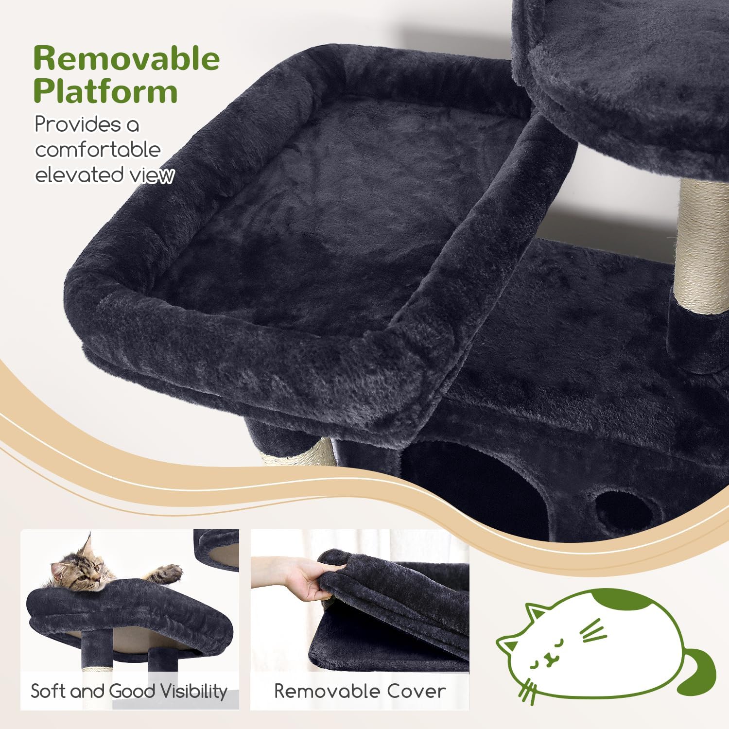 - MULTIPLE RESTING PLACES: Our tall cat tree features a enlarge platform (11.8β x 17.7β), a high point top perch and two spacious cozy cat caves, making it an excellent choice for multi-cat households. Provide ample space and multiple activity areas, allowing each cat to find its own cozy corner and enjoy the fun of playing together