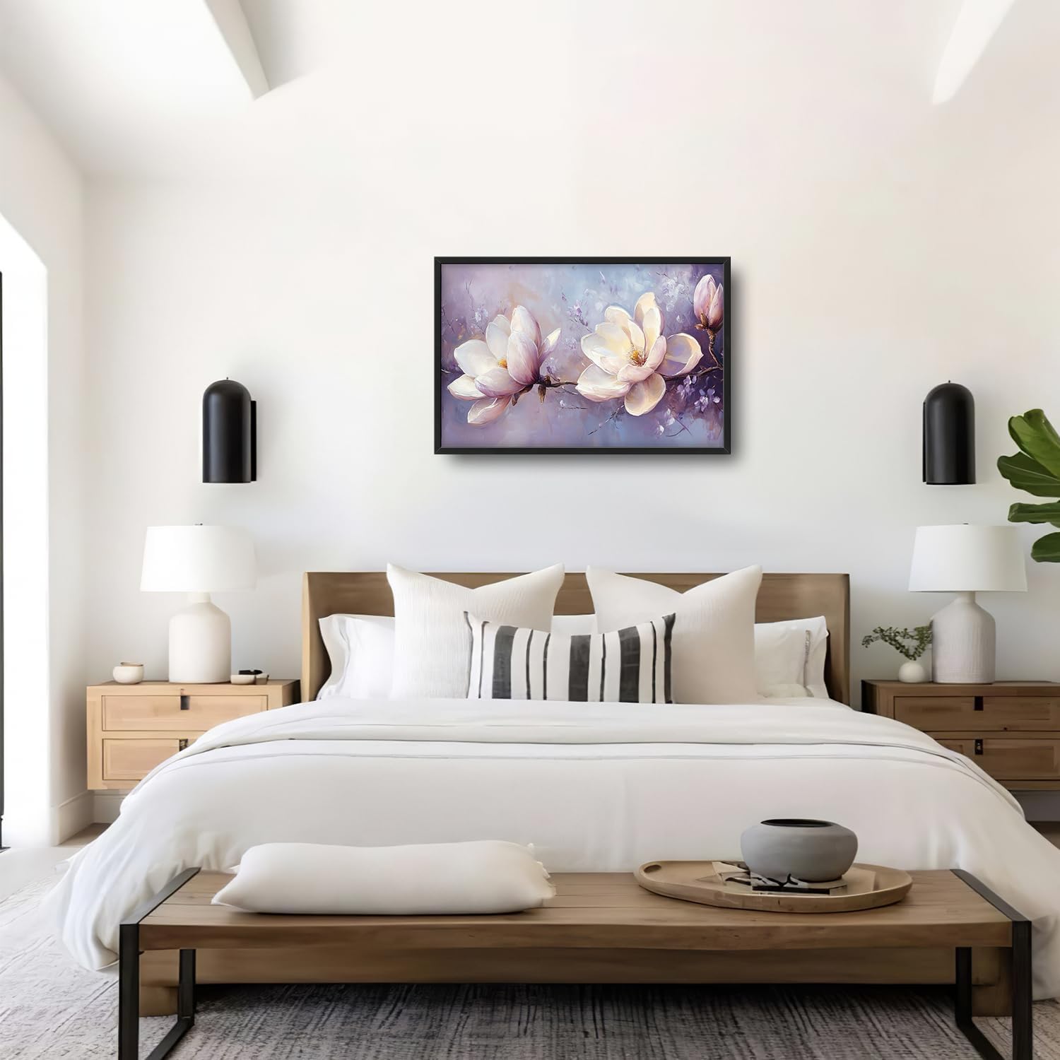 Large Floral Landscape Wall Art for Living Room, Purple Flower Canvas Oversized Wall Decor, Aesthetics Framed Pictures Painting Print Artwork for Bedroom Office 36L" x 24W"