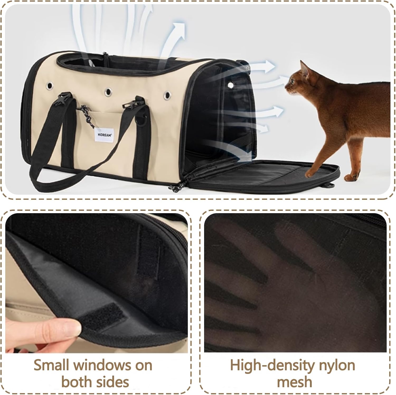 - Multiple ways of carrying: The pet bag can be carried on one shoulder or by hand. The design on the back of the cat bag can be put on a trolley case to save worry and reduce the burden for travel. Equipped with an adjustable shoulder strap, the pet shoulder strap can be fixed on the seat to effectively prevent the pet from being frightened. Zipper openings are designed on the top and sides of the cat bag to facilitate the free entry and exit of pets.