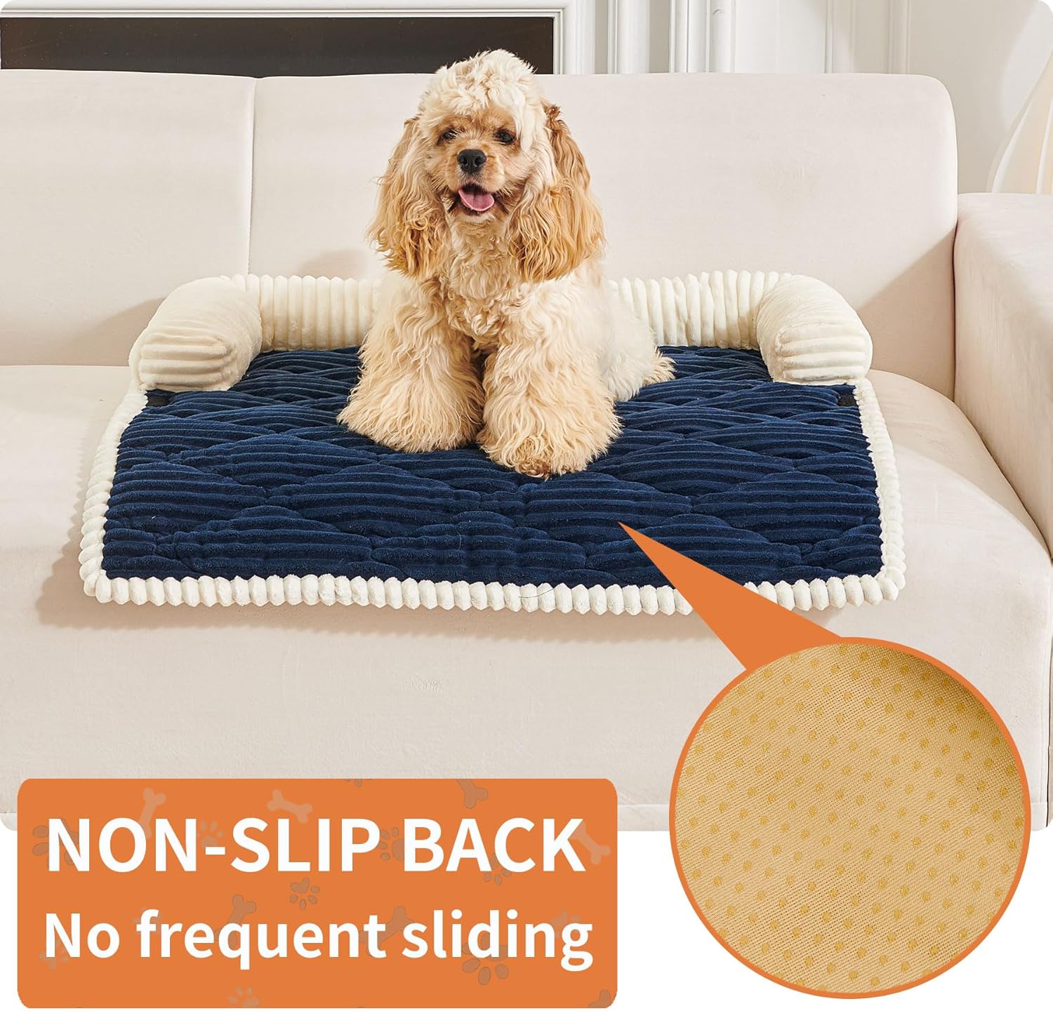 - EXCELLENT NON-SLIP:The back of the non-slip dog bed couch is made of silicone particles adhesive layer, which can achieve a firm fit without displacement. Even if your pet is jumping around on the sofa, dog bed for couch can firmly grasp the surface of the sofa and always keep its position fixed. As a dog bed for couch it also fully protects the sofa from pet scratch marks, hair adhesion and daily stains and wear and tear, making the furniture last as long as new.