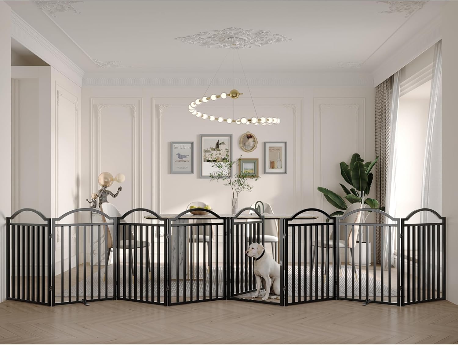 - 【MULTIFUNCTIONAL PET GATE】This pet gate is primarily used in large openings and doorways to create barriers in your home or office to prevent your pet from being in unwanted areas of your home or office.