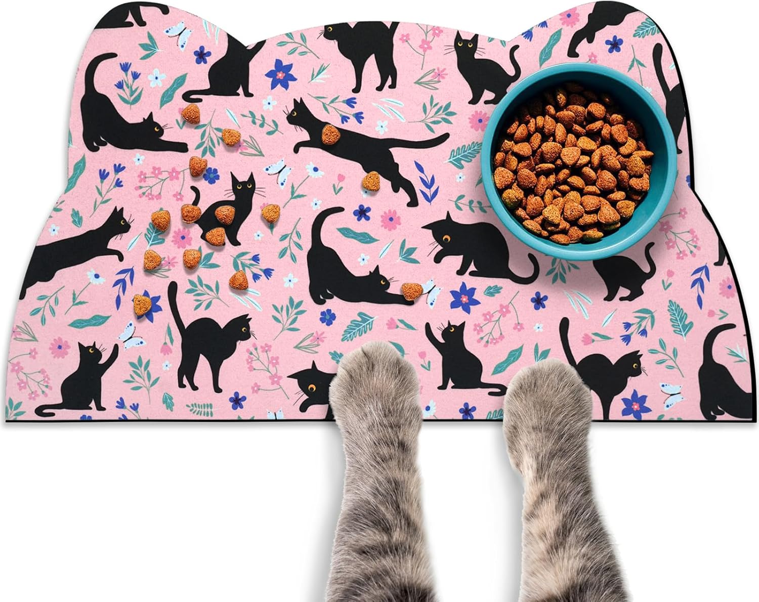 - 【Super Absorbent Pet Placemat】With highly absorbent surface and waterproof backing , this cat bowl mat can quickly absorb liquid and wet food stains to prevent food and water from spilling onto floor