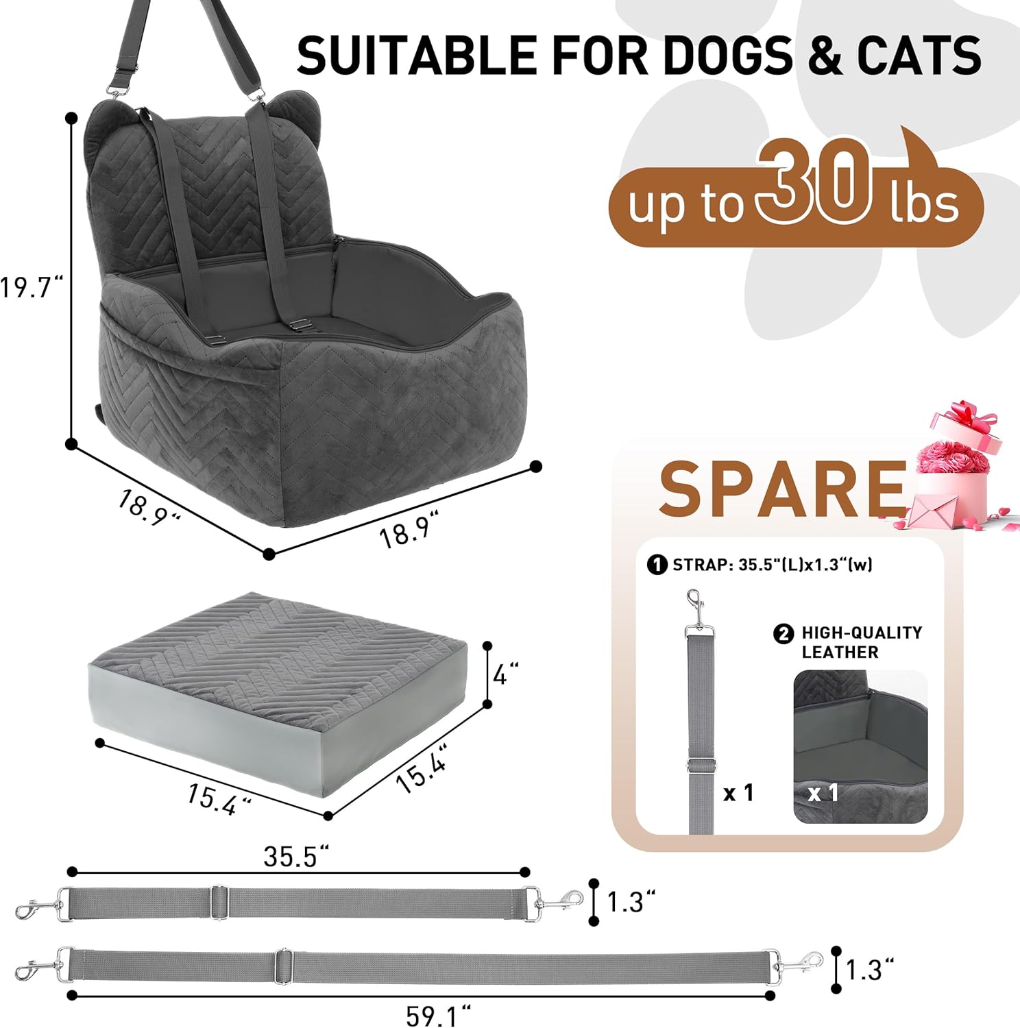 - Durable Scratch-Resistant PU Cover: This car dog seat features a detachable waterproof PU leather cover that protects against urine, spills, and scratches while protecting your car clean. The cover keeps pets cool in summer, while removing it in winter ensures warmth