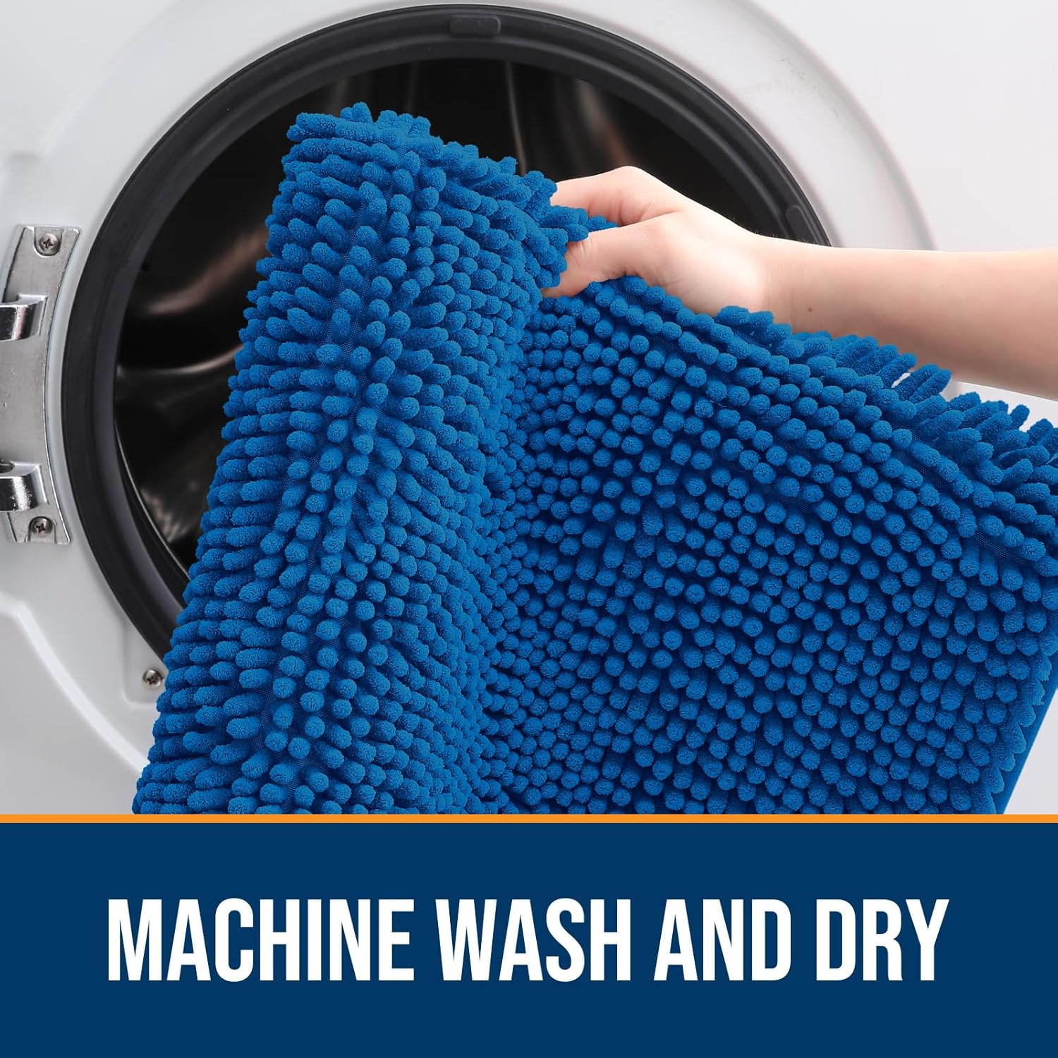 OLANLY Dog Door Mat for Muddy Paws 36x24, Absorbs Moisture and Dirt, Absorbent Non-Slip Washable Doormat, Quick Dry Chenille Mud Mat, Entry Indoor Entryway Carpet for Inside Floor, Deep Navy Blue