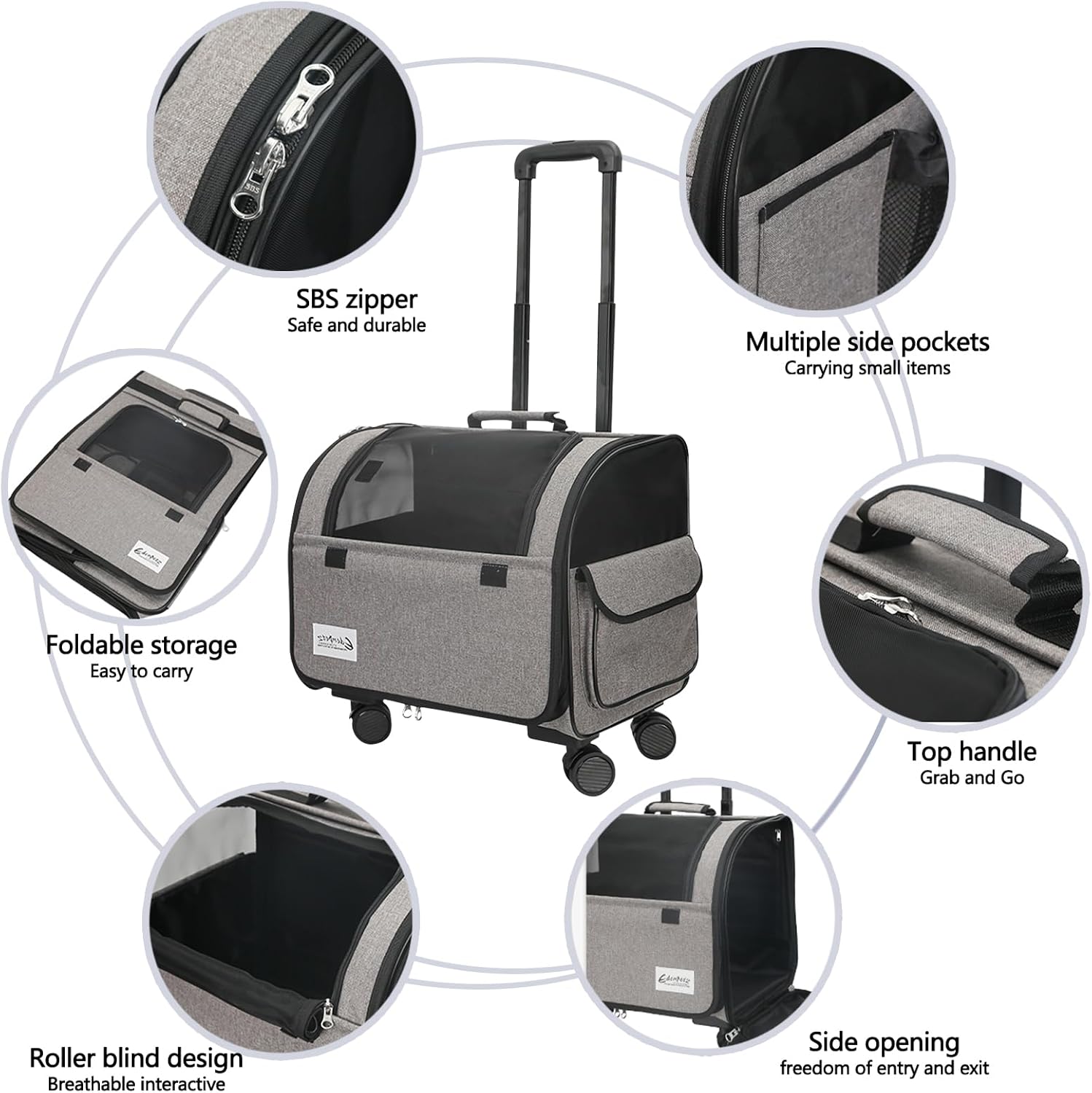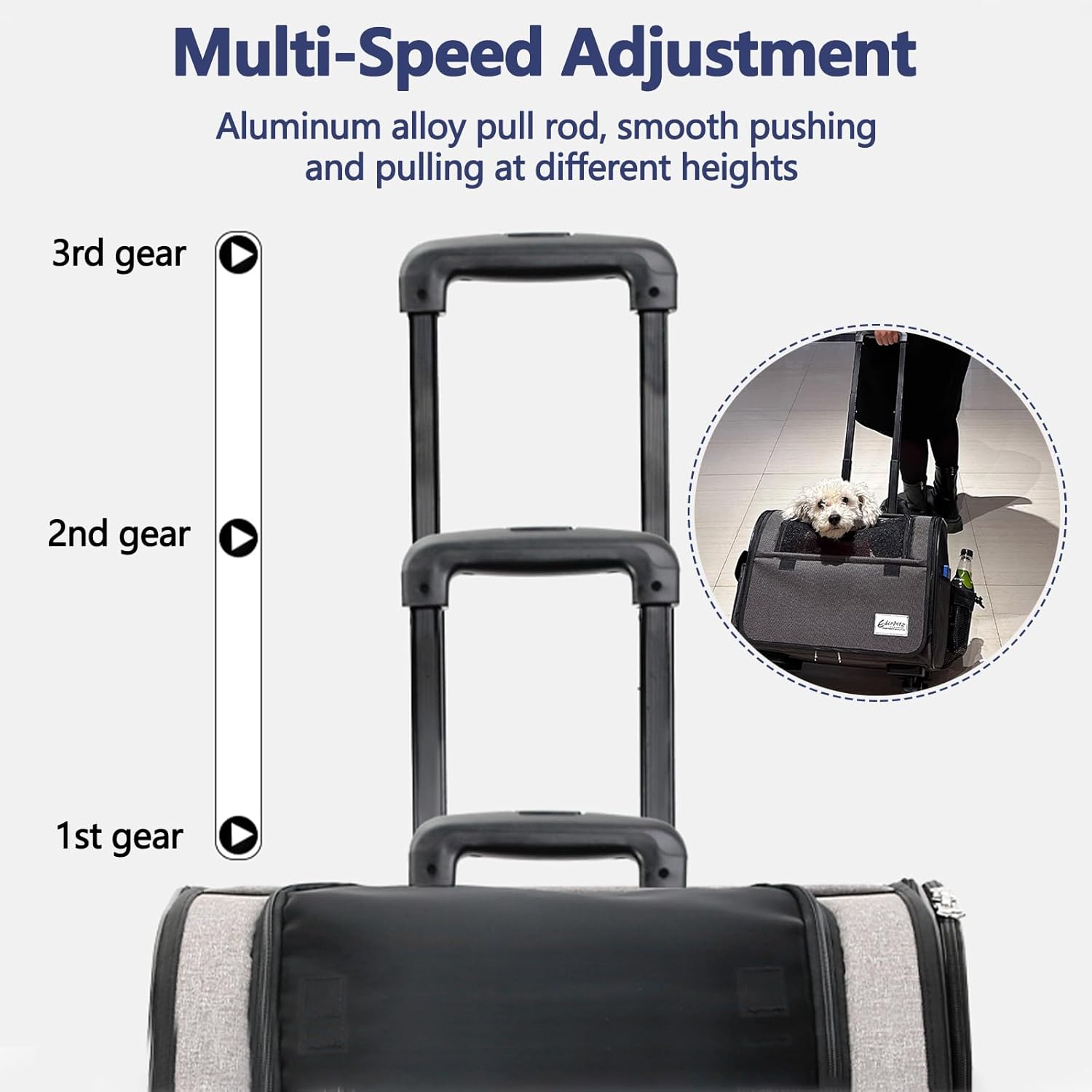 - Two ways to carry: Our pet bag allows you to easily unload the burden on your shoulders! This pet bag is equipped with 4 high-quality rollers that can rotate 360ยฐ, which can bring a smooth and comfortable experience even on rugged roads or grass. The top handle is convenient for hand-carrying, and two ways of carrying make travel more convenient.