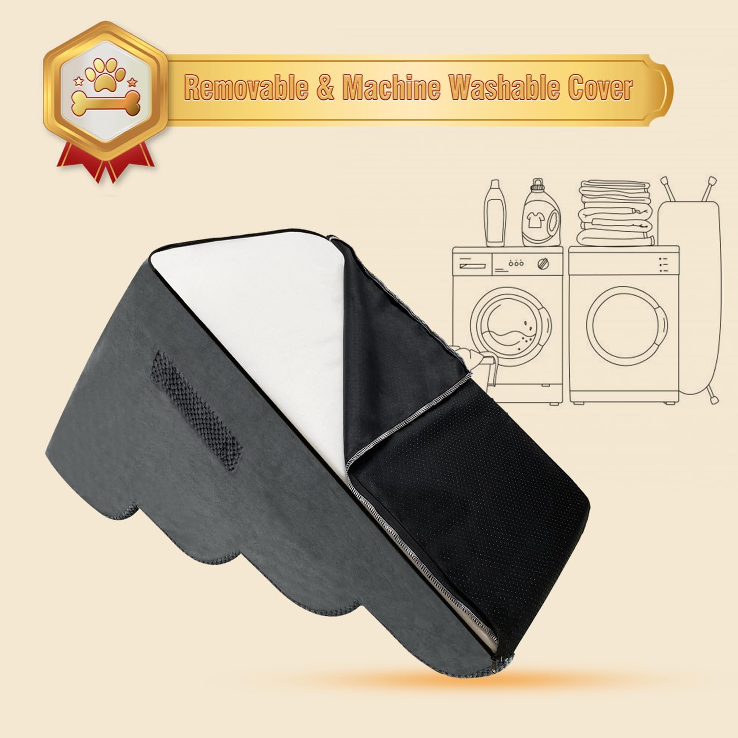 - Easy to Clean and Maintain - The washable cover of our pet stairs is removable and easy to clean, and the zipper design allows for convenient hand washing or machine washing. Please note that the foam core should not be machine washed or dried.