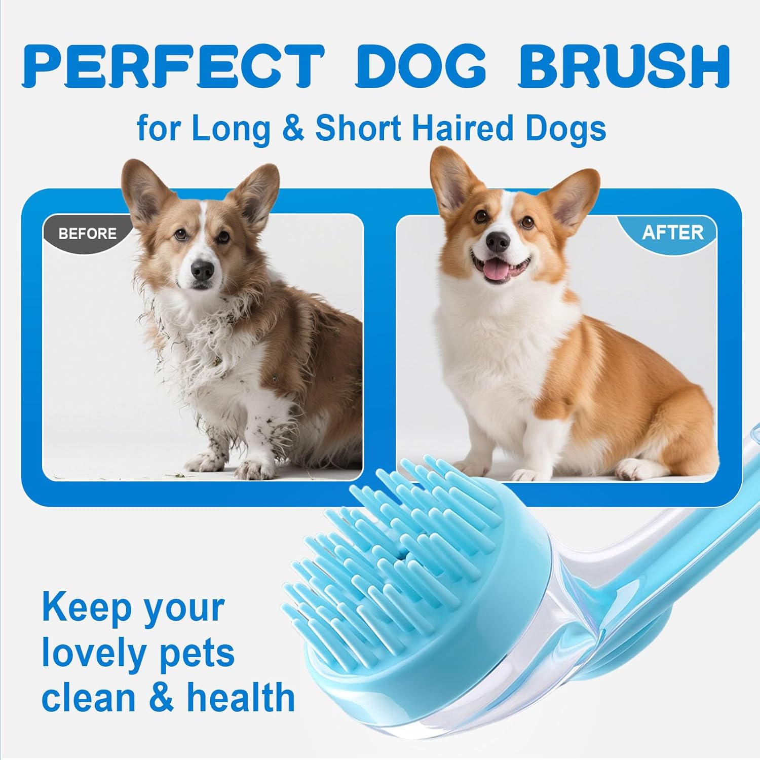 Dog Bath Brush, Silicone Pet Bath Brush with Soap Dispenser,Deep Cleansing & Gentle Massage for Dogs & Cats, Suitable for Long & Short Hair, Easy Grip, Bathing & Grooming(Blue)