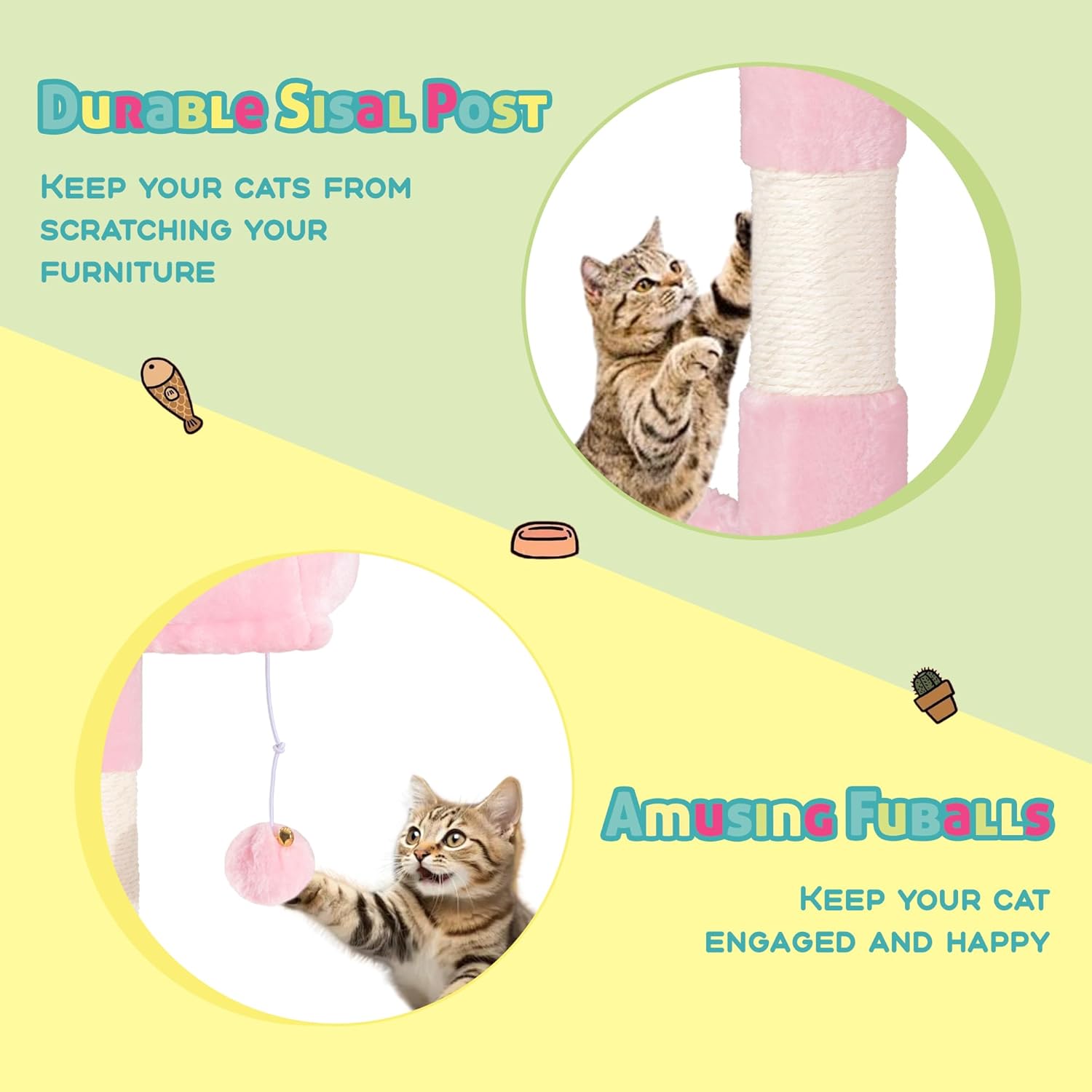 - Dependable Strength: The sturdy, wide base minimizes wobbling or tipping, while the robust frame supports cats up to 33 pounds for stress-free play