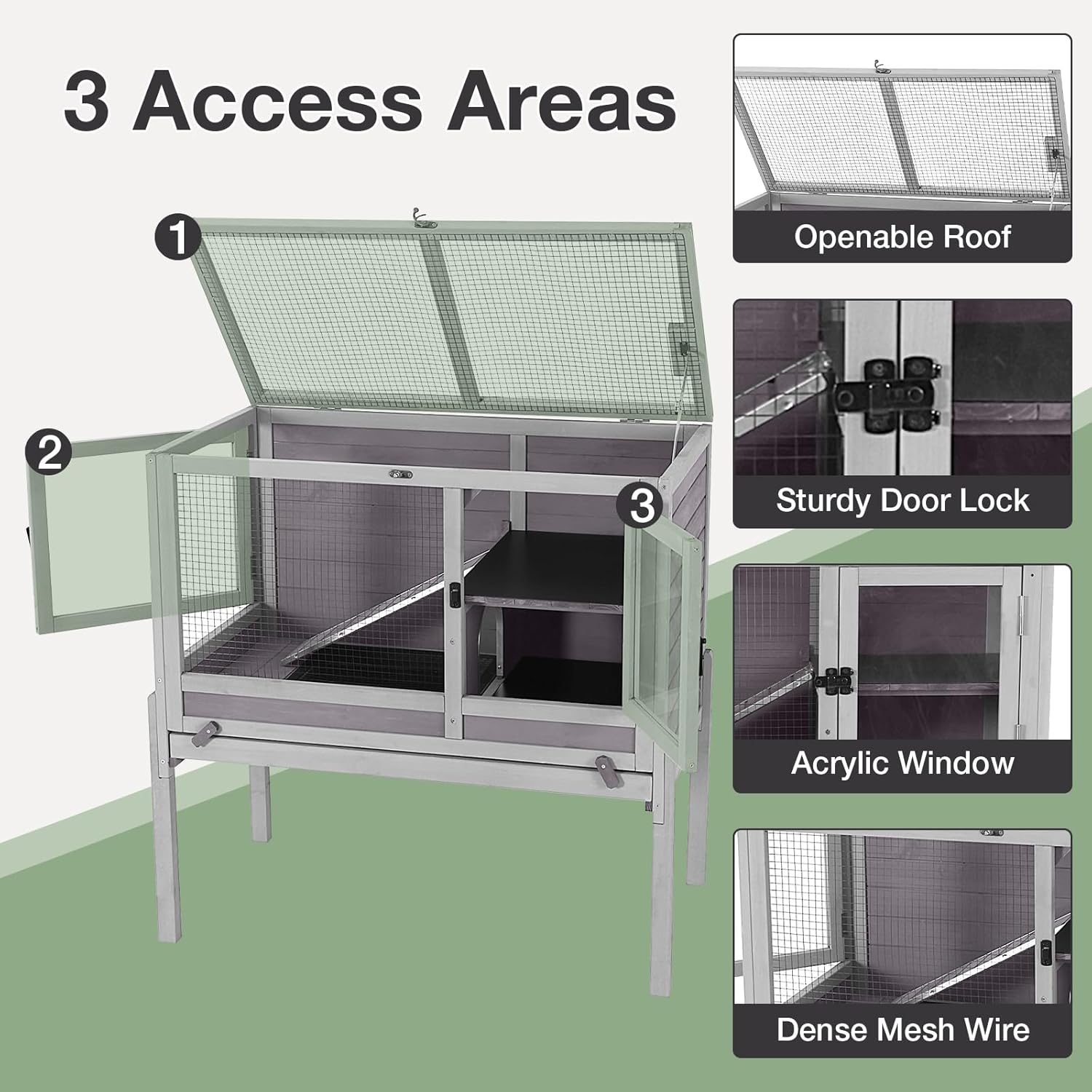 - Generous 36.6"L x 19.6"W x 36.6"H Space Comfortably houses 1 rabbit or 1-2 guinea pigs/ferrets/hamsters. Adaptable layout suits diverse small pet needs