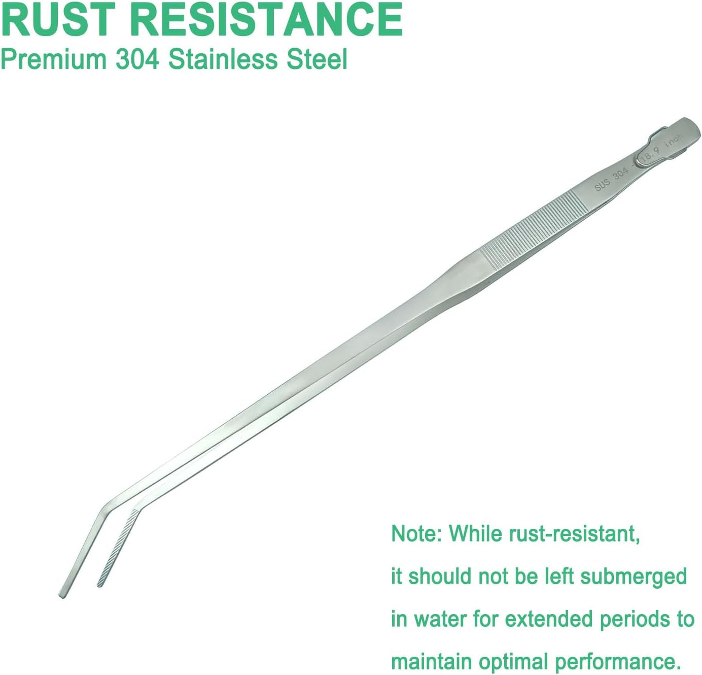 - âăPREMIUM 304 STAINLESS STEEL CONSTRUCTIONăCrafted from high-quality 304 stainless steel, our aquascape tool boasts exceptional rust resistance, ensuring long-lasting durability even in humid aquarium or terrarium environments. Its corrosion-proof property makes it a reliable tool for both freshwater and saltwater tank maintenance, as well as damp reptile habitats. Note: While rust-resistant, it should not be left submerged in water for extended periods to maintain optimal performance.â