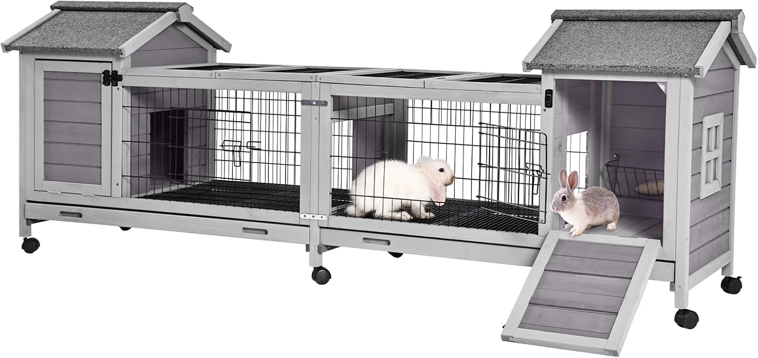 - Easy Access: This rabbit hutch is equipped with 8 access points, including multiple sliding doors and an open top design, allowing you to easily observe and care for your pets at any time. Whether it's feeding, cleaning, or interacting with your pets, everything can be done effortlessly.
