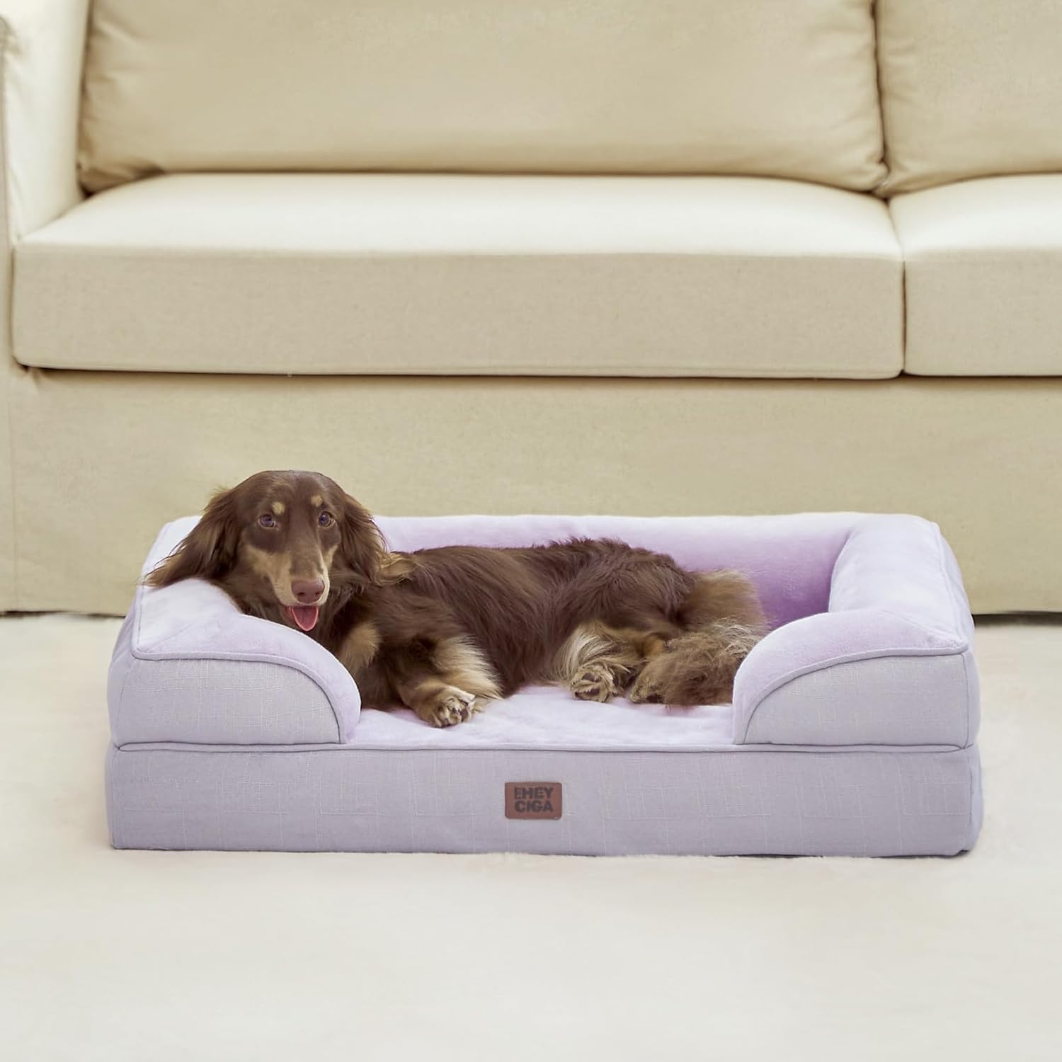 EHEYCIGA Orthopedic Dog Bed for Medium Dogs, Waterproof Memory Foam Medium Pet Beds with Sides, Non-Slip Bottom and Egg-Crate Foam Dog Couch Bed with Washable Removable Cover, Lilac