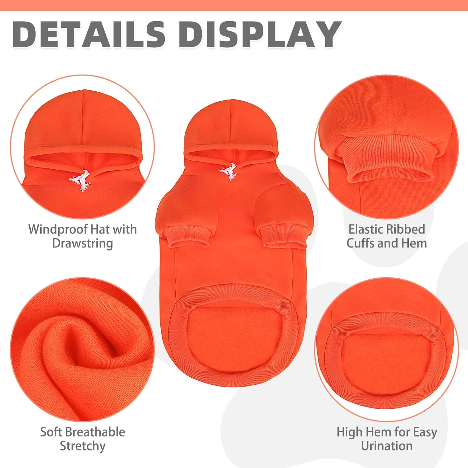 KOOLTAIL Basic Fall Dog Hoodie - Soft & Warm Dog Hoodie Sweater with Leash Hole and Pocket, Pet Winter Coat, Cold Weather Clothes Sweatshirt for Small Medium Large Dogs Puppy Cat Boys Girls,Orange XXL