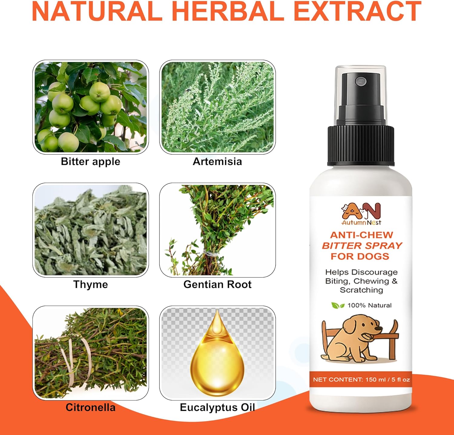 - 【Stop Unwanted Chewing and Licking】 This no chew spray for dogs uses a powerful natural bitter apple formula to effectively stop pets from chewing, licking, or scratching furniture, shoes, carpets, and more. Perfect for training puppies or correcting destructive habits.