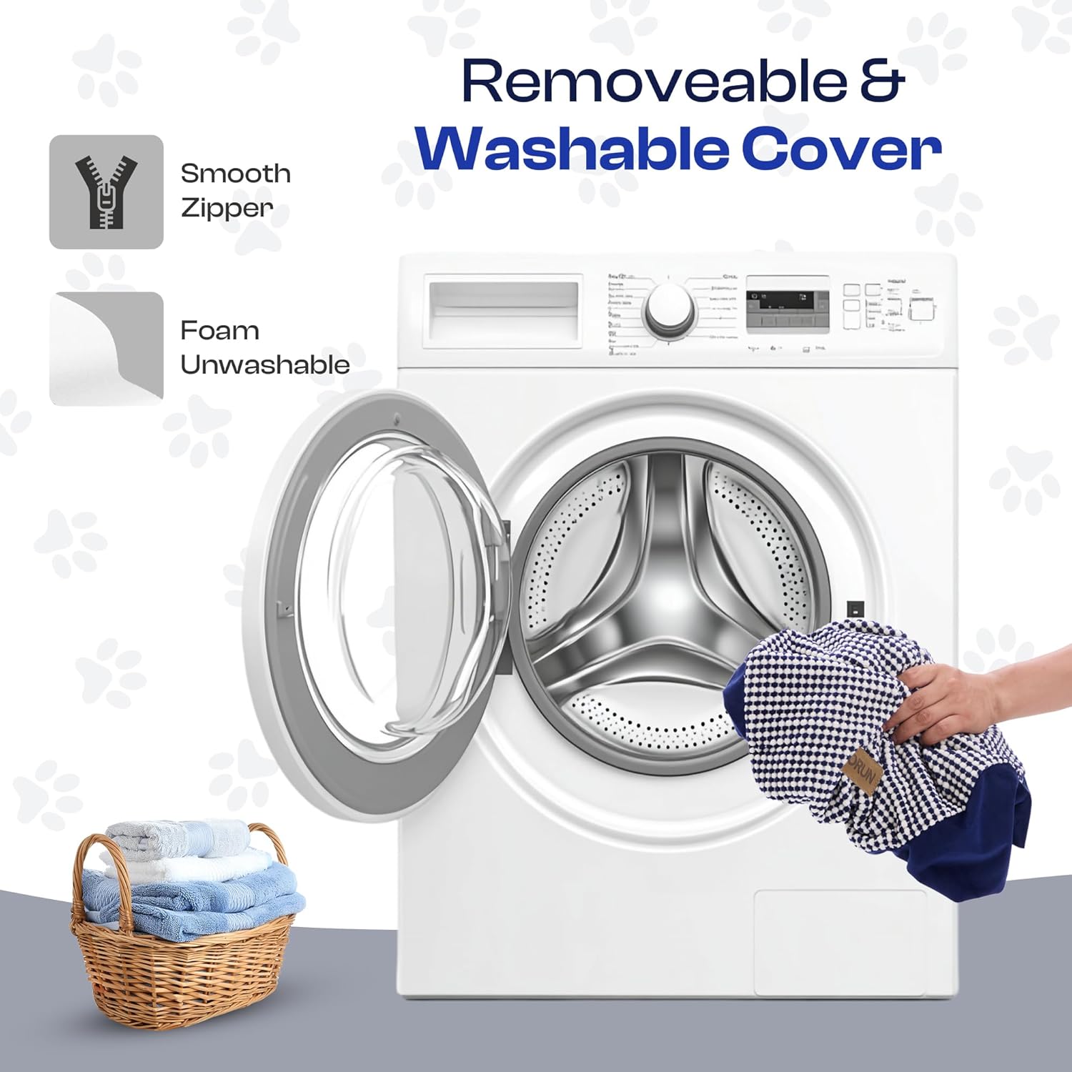 - Fully Washable Cover – Soft upholstery zip cover slips off for machine wash; breathable velvet tread grips paws even when wet.