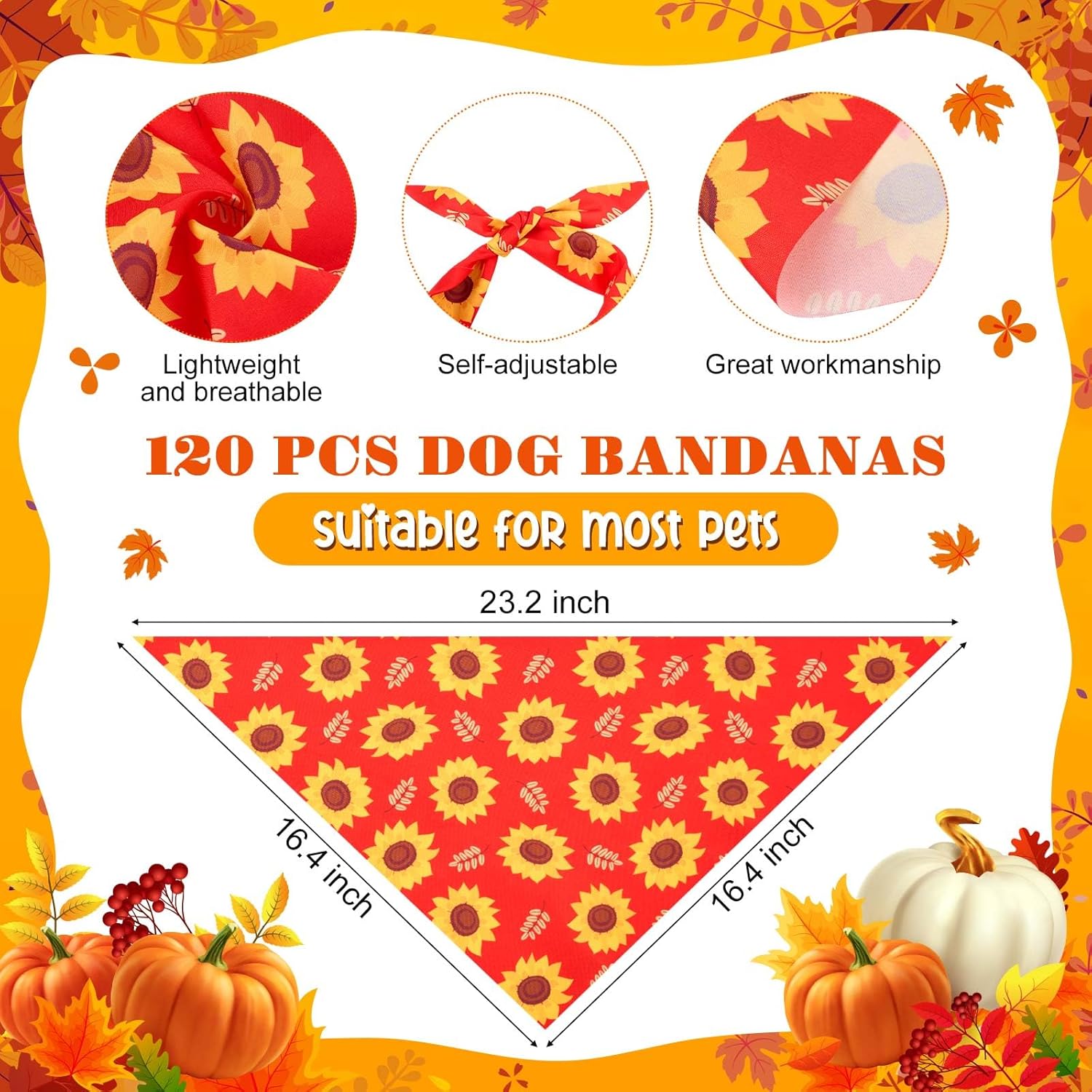 - Bulk Fall Bandanas Set: Package includes 120 Thanksgiving dog bandanas with 40 festive designs (3 pieces each). Vibrant pumpkin, leaf, sunflower, and plaid patterns make them ideal for daily wear, pet parties, and photo prop