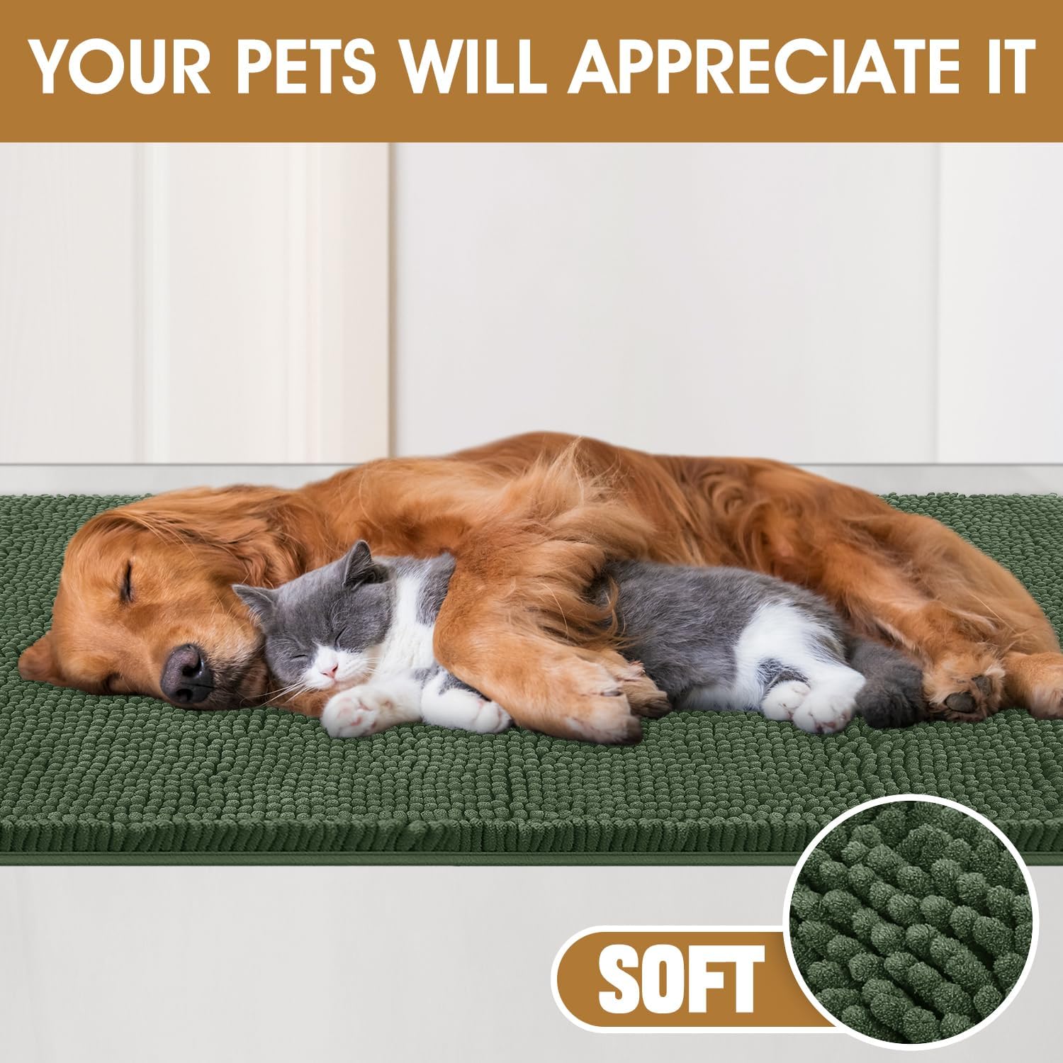 Dog Door Mats for Muddy Paws, Chenille Absorbent Door Mats, Non Slip Heavy Mud Mat for Dogs, Soft Indoor Door Mat for Entryway, Mud Paws, Inside Floor,36" X 24", Olive