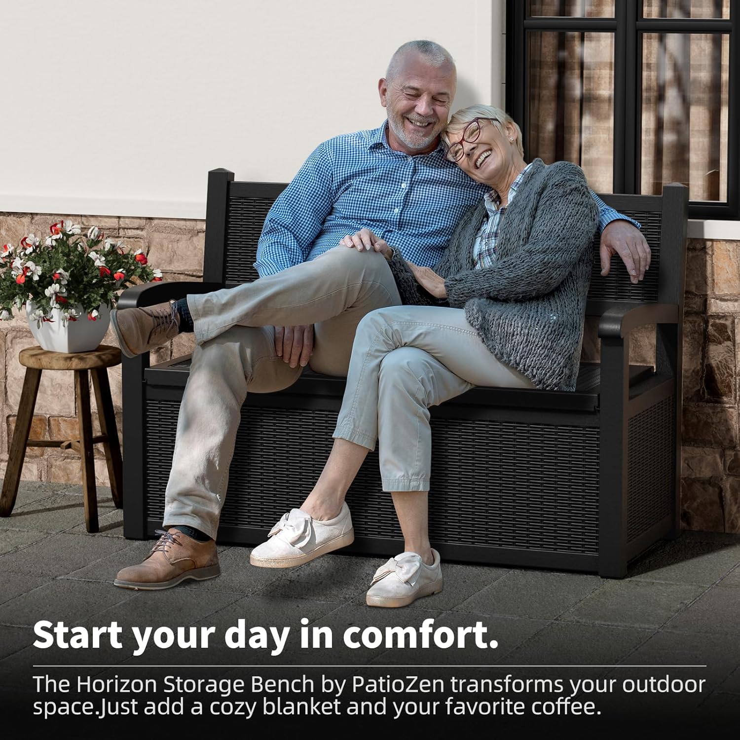 - WATERPROOF AND FADE PROOF : Crafted from high-quality, eco-friendly resin, the EasyUp storage bench is designed to be waterproof and UV-resistant, ensuring excellent durability. It withstands harsh sun and rain, maintaining its original appearance and strength in any season, making your outdoor life easier and worry-free.