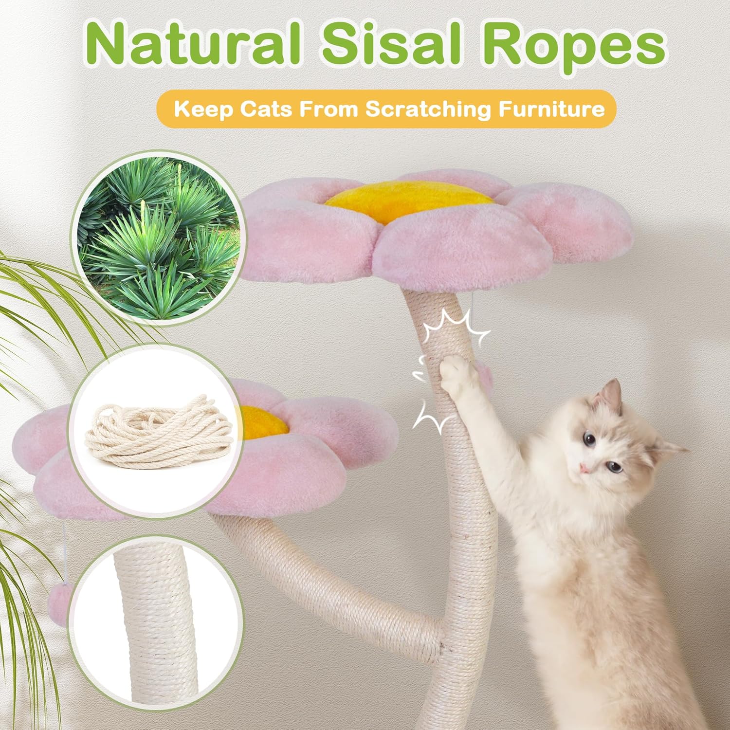 - 【57" Aesthetic Cat Tree with Charming Floral Design】Let Cats Sleep on a flower - Different from normal cat trees, our enchanting flower cat tree blending with pink, With the total height of 57" in 5-level structure, not only an eye-catching paradise that provides perfect play and rest area for your feline friends, but also fresh your living room as decoration. Soft fabric on every level giving your kitty the royal treatment with purr-worthy nap