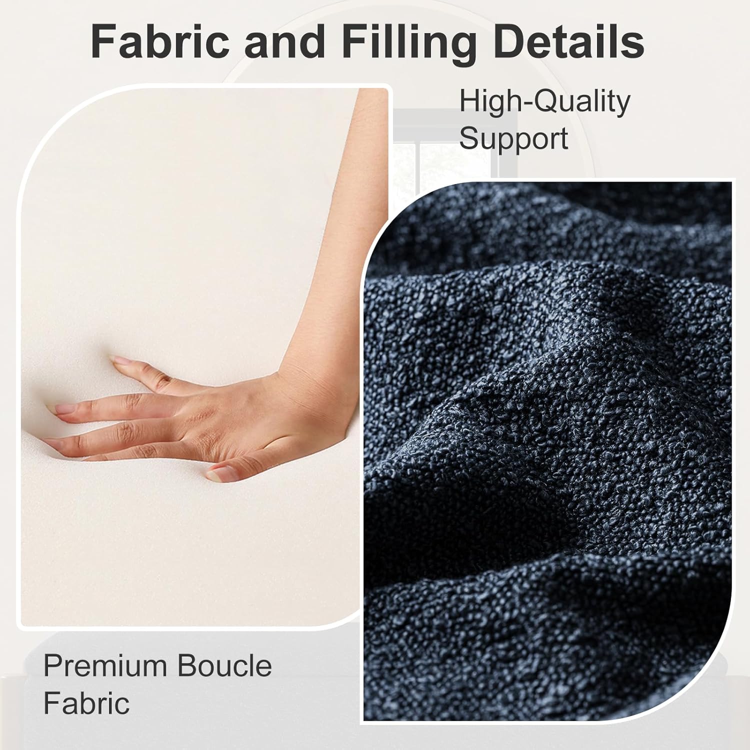 - Soft Boucle Fabric and High-Density Padding: Ottoman with storage features luxurious boucle upholstery for a soft, comfortable seat. This storage ottoman's durable fabric and high-density foam padding offer excellent support. Whether used as seating, a footrest, or an accent piece, this storage bench ensures lasting comfort. For bedroom use, it guarantees elegance and comfort. Storage ottomans with such padding are reliable and stylish additions