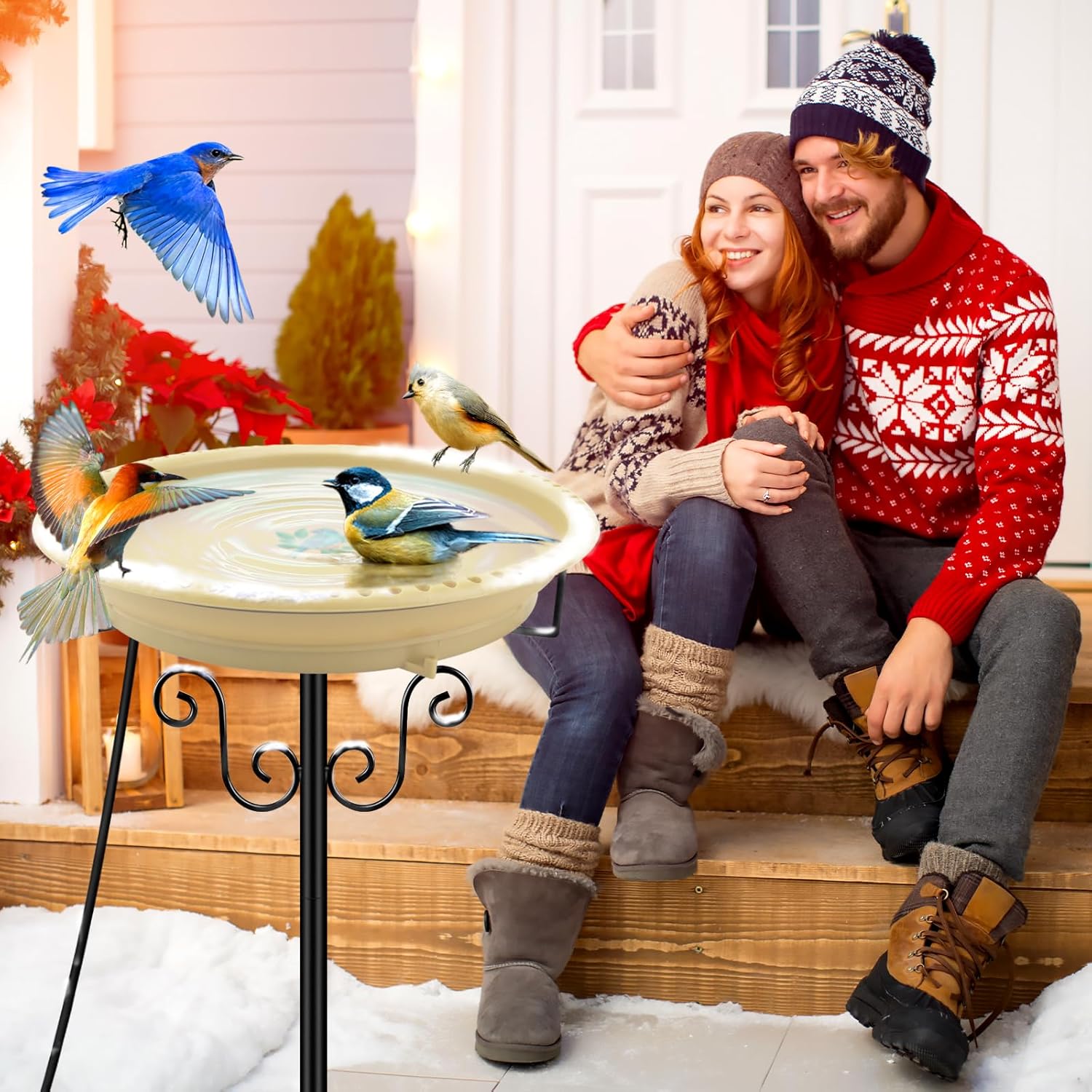 - 【Great Bird Lover Gifts】Our heated bird bath can be a gorgeous addition for your yard, lawn, garden, patio, a great gift for your friend or family member, also a special gifts for wild bird watchers and nature lovers; Spend your free time watching birds playing, drinking or bathing in your garden, it will brighten up your boring and long winter days
