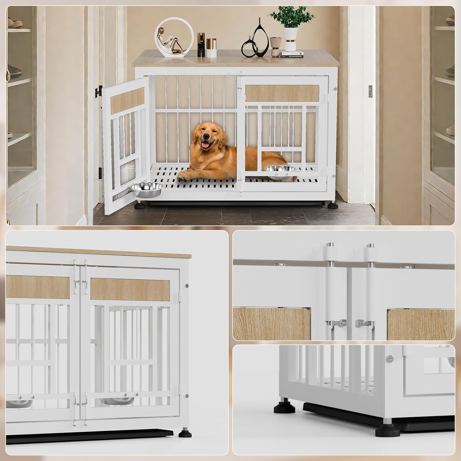 - Heavy-Duty & Safe Construction: Dog cage furniture features reinforced metal frame (rust-resistant) and durable engineered wood panels. It won't be damaged by pet bites! Ventilation cutouts ensure airflow for pet comfort and safety.