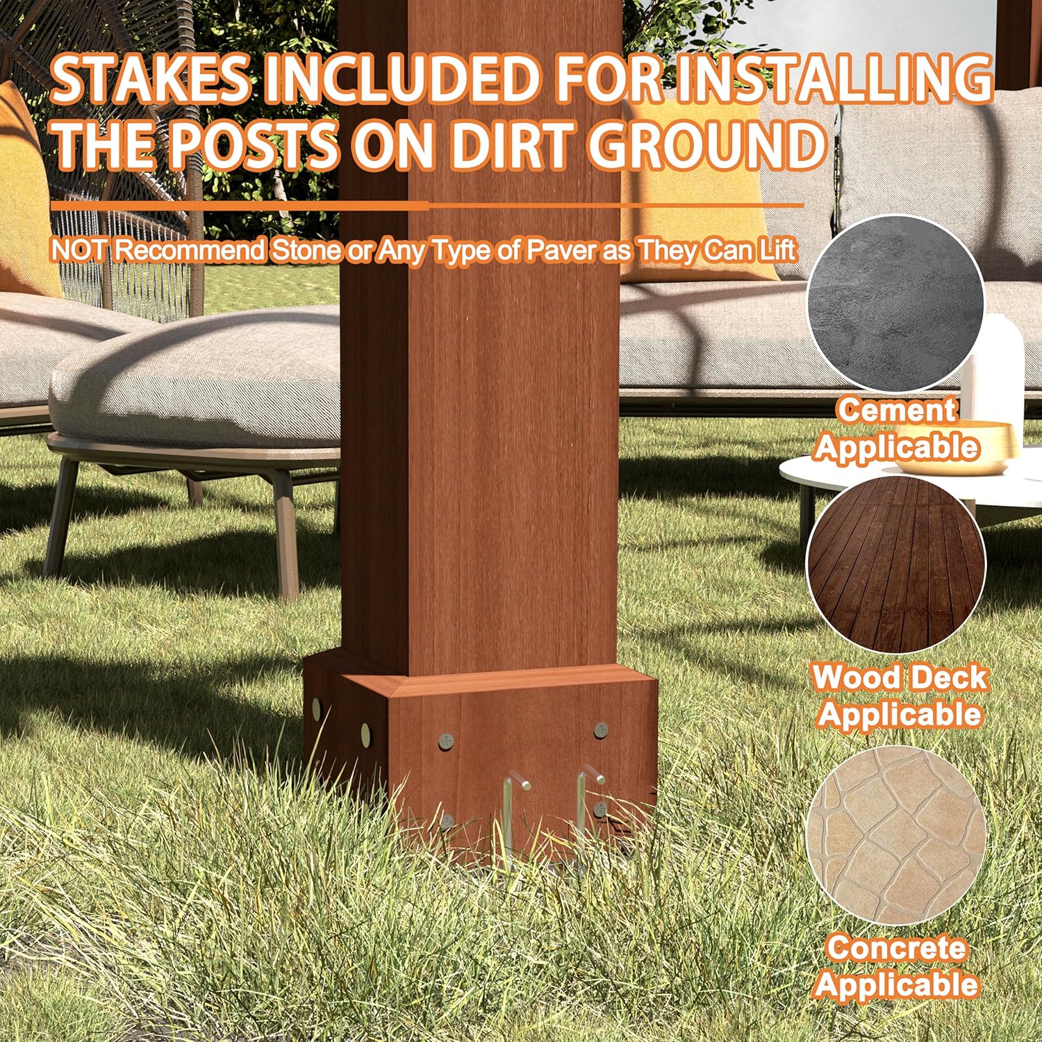 - Strong Stability: This pergola pavilion features ground piles for added stability, allowing you to secure it to various surfaces such as cement, concrete, or wood decks. Perfect for patios, backyards, and more, itโs ideal for hosting outdoor gatherings, relaxing in the shade, or having afternoon tea.